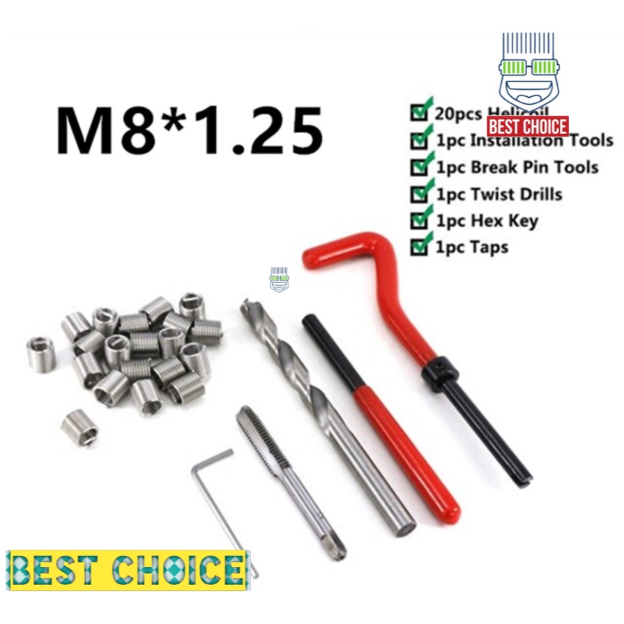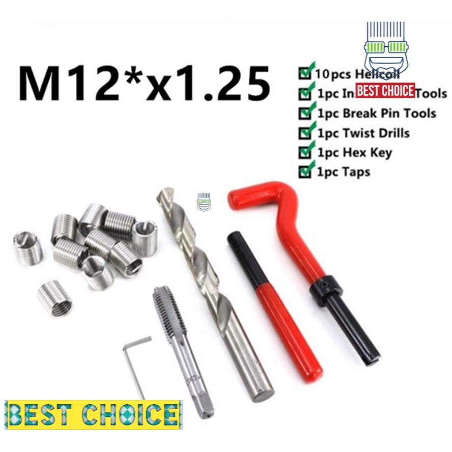 M6/M8/M10/M12 Thread Repair Insert Tool Kit for Restoring Damaged Thread Twist Drill Bit Kit Helicoil Thread Inserts Kit