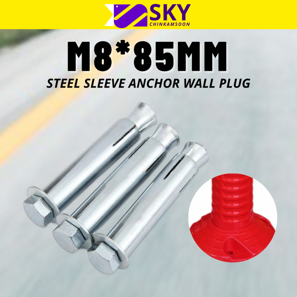M8 Sleeve Anchor Wall Plug Besi Skru Dinding Simen Hexagon Screw Wall Plug Iron Expansion Bolt Besi