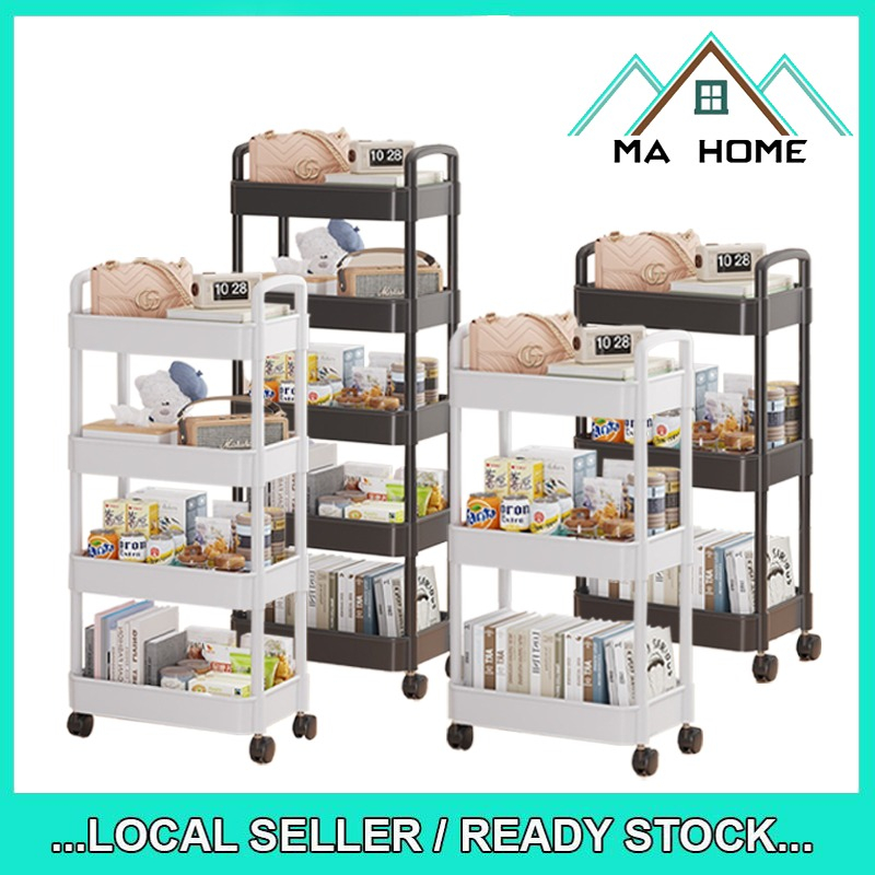 MA Home Office Shelves Home Kitchen Rack With Plastic Wheel Multifunction Storage Trolley Rack 3 4 5 Tier Rack