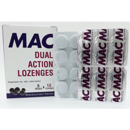 MAC DUAL ACTION LOZENGES X 1 BLISTER (12LOZENGES) BLACKCURRANT FLAVOUR (sore throat/kerongkong sakit)