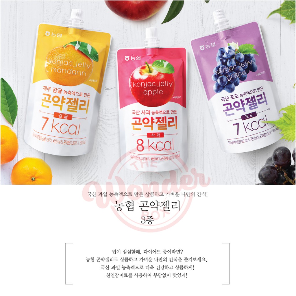 MADE IN KOREA | Twin Pack Korean Nonghyup Konjac Jelly | Grape, Apple, Orange 농협 곤약젤리 사과 韩国魔芋果冻 | THE WONDER BOX