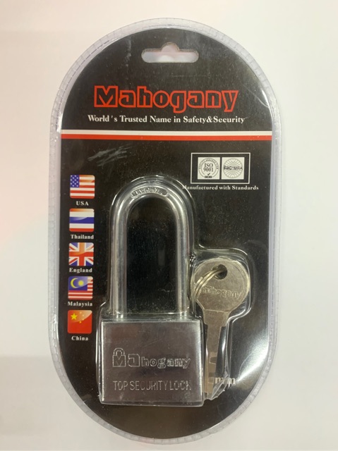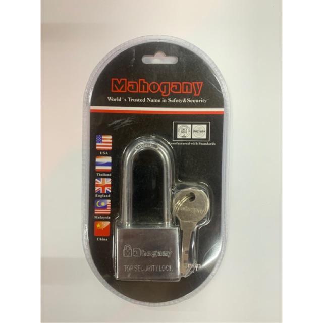 MAHOGANY LONG SHACKLE CHROME PAD LOCK 40MM