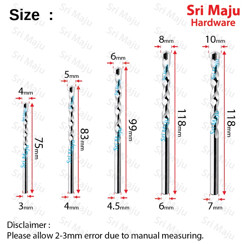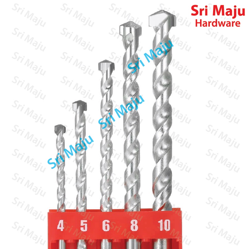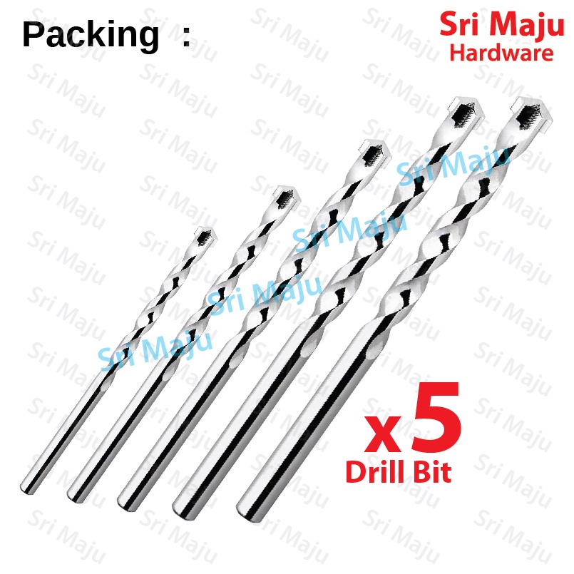 MAJU 5pcs Masonry Wall Impact Drill Bit Set for Drilling Concrete Cement Dry Brick Wall Mata Bor Tebuk Batu Dinding