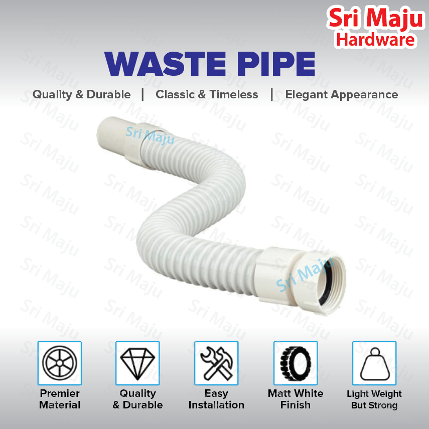 MAJU SWA-FWP Flexible Waste PVC Pipe Faucet Basin Kitchen Sink Stretch Water Drain Drainage Fitting Paip Air 32mm 40mm