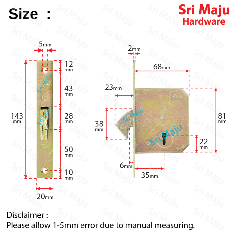 MAJU SHK-SUN Quality Sliding Grille Door Hook Lock for Iron Metal Grill Gate Front Door Kunci Pintu Besi Depan