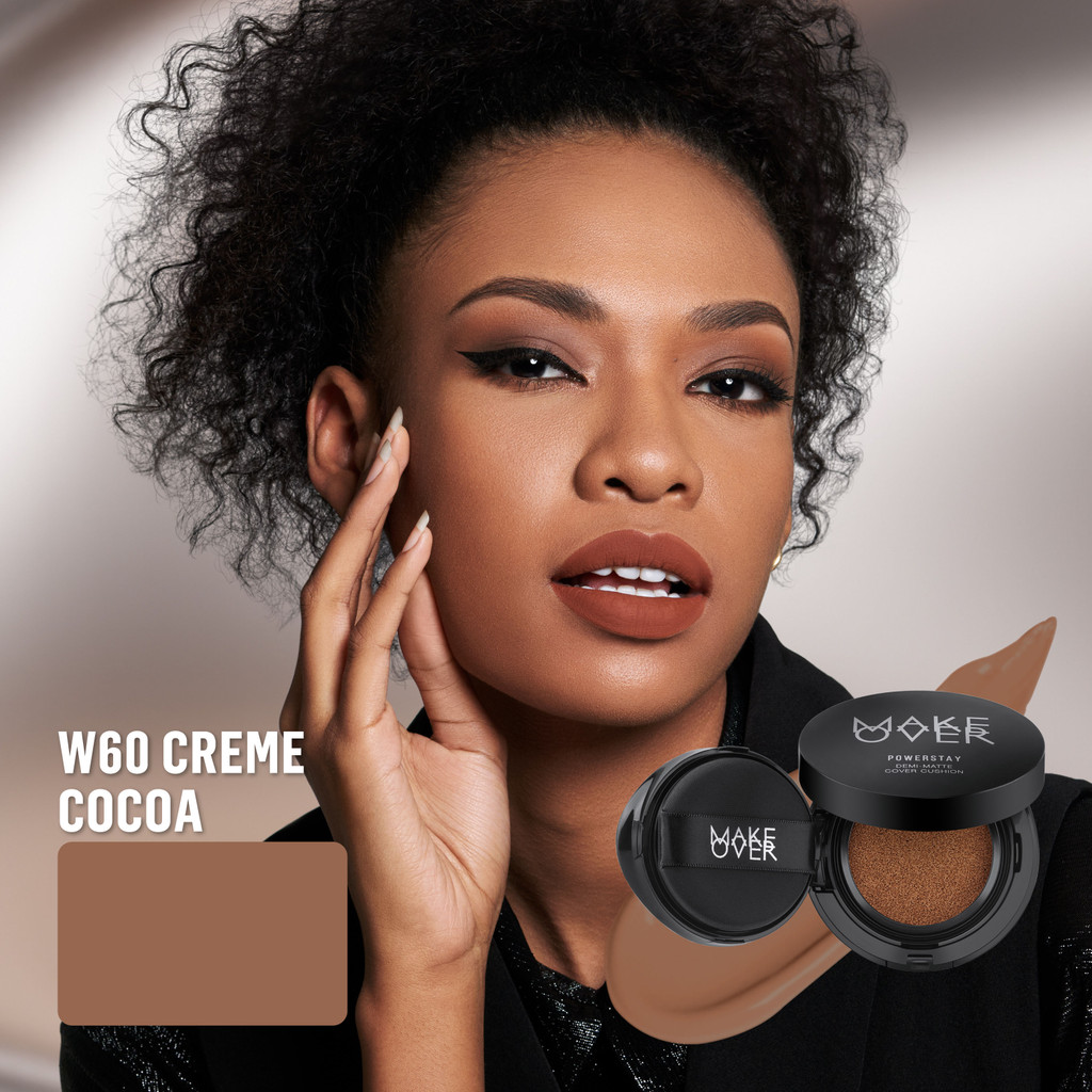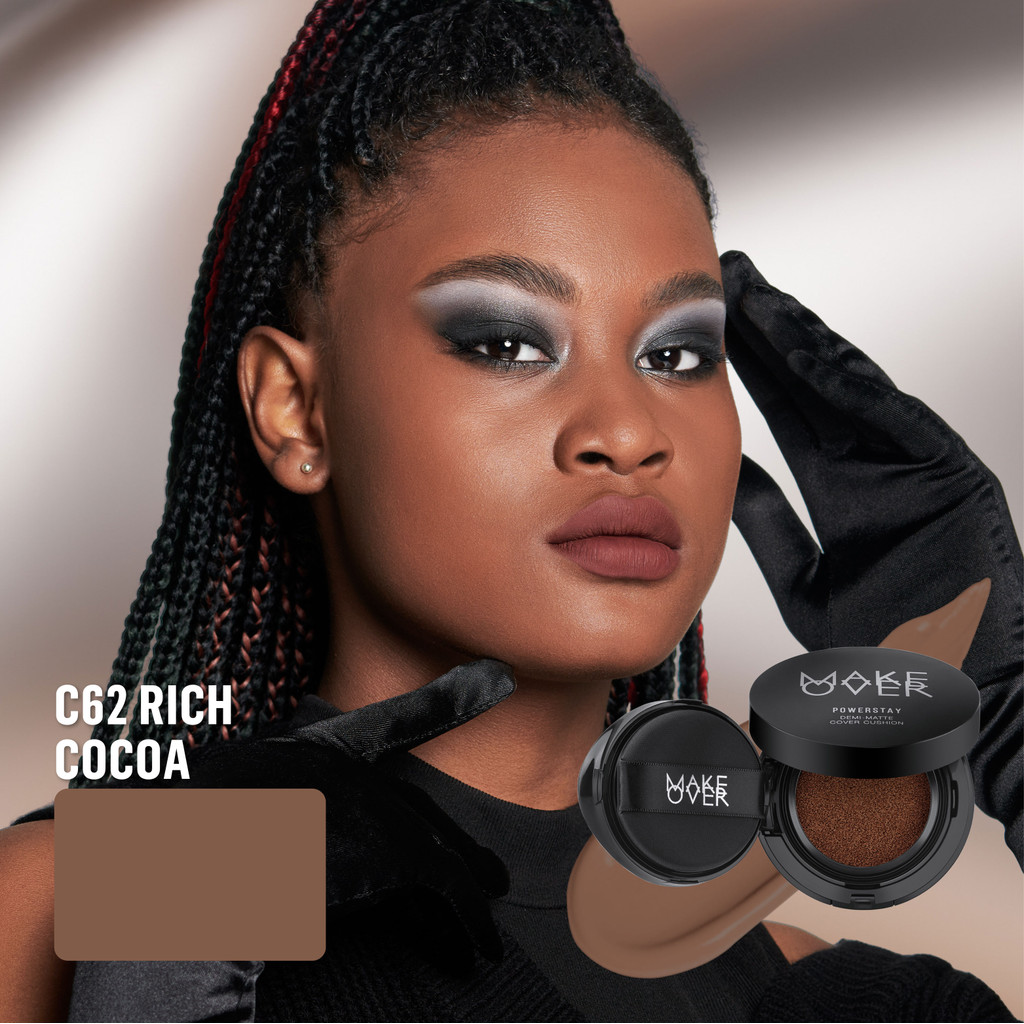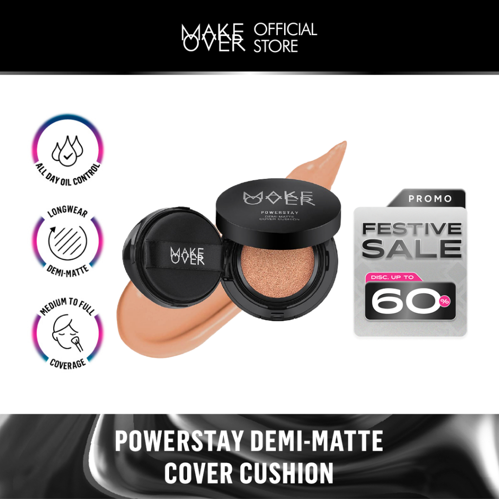 MAKE OVER Powerstay Demi-Matte Cover Cushion-Oily Skin,24H Oil Control, Longwear, Medium to Full Coverage