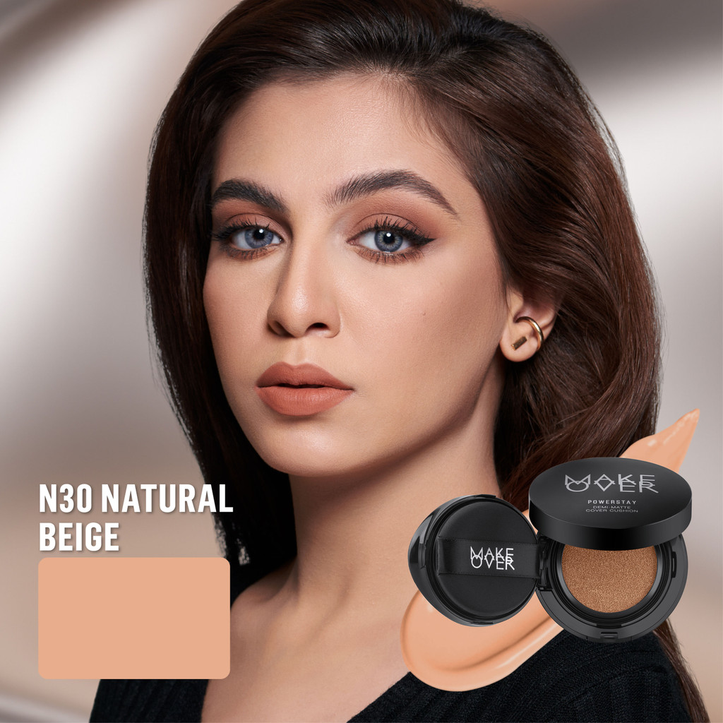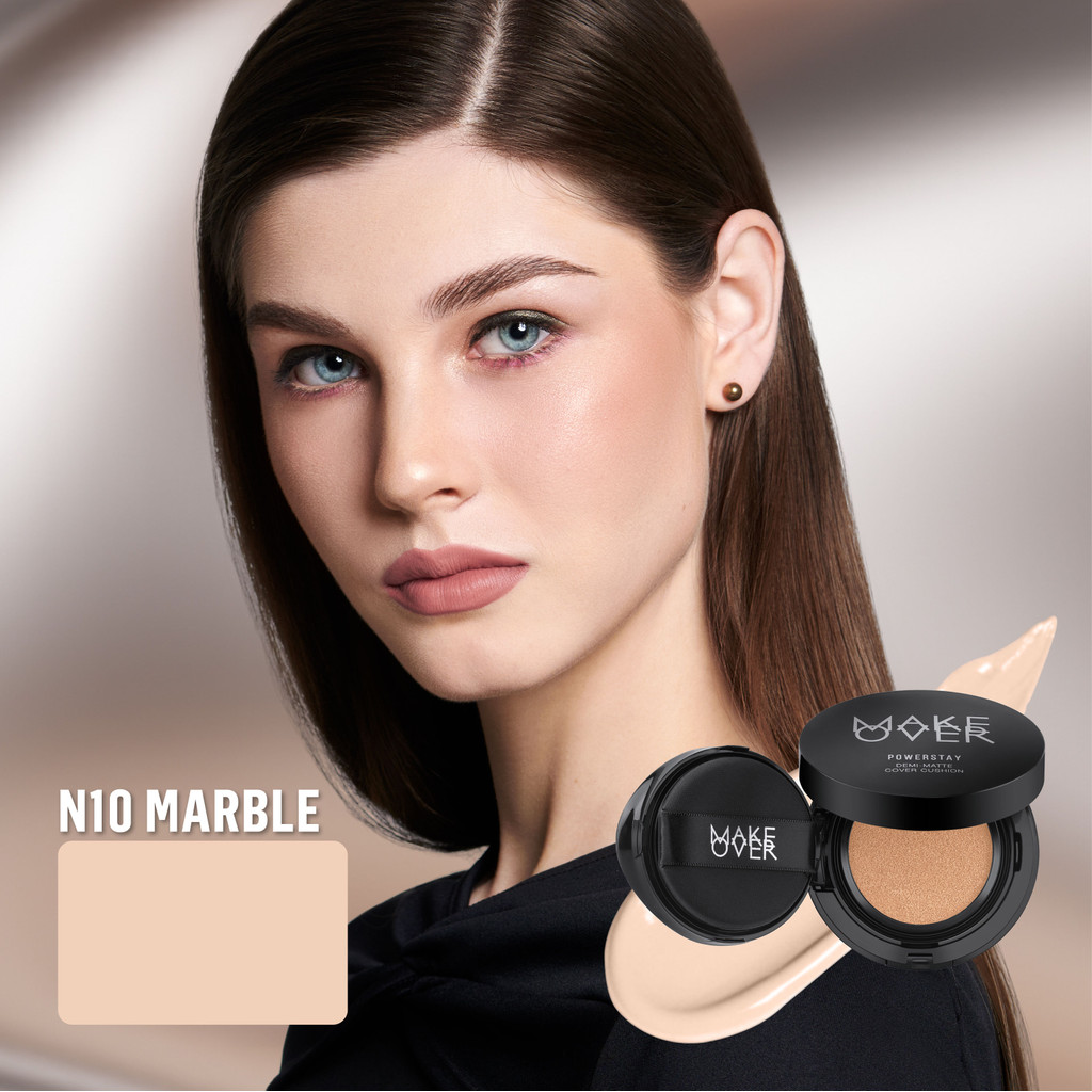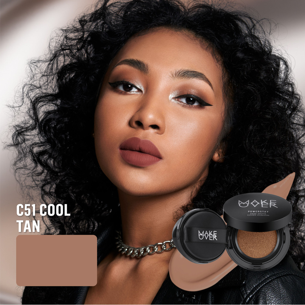 MAKE OVER Powerstay Demi-Matte Cover Cushion-Oily Skin,24H Oil Control, Longwear, Medium to Full Coverage