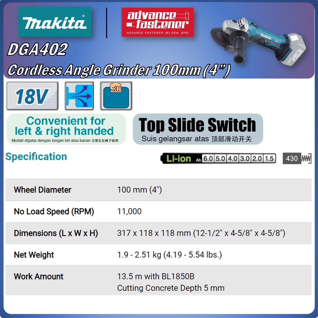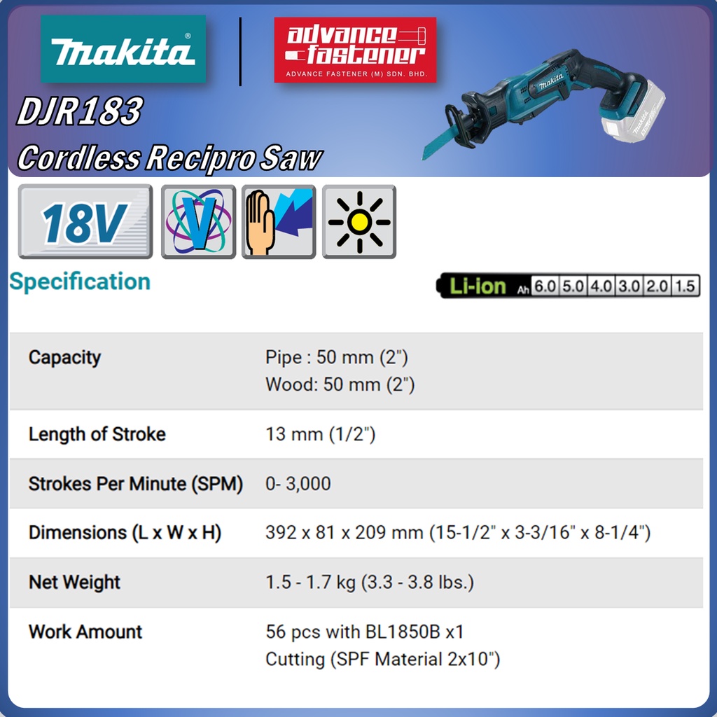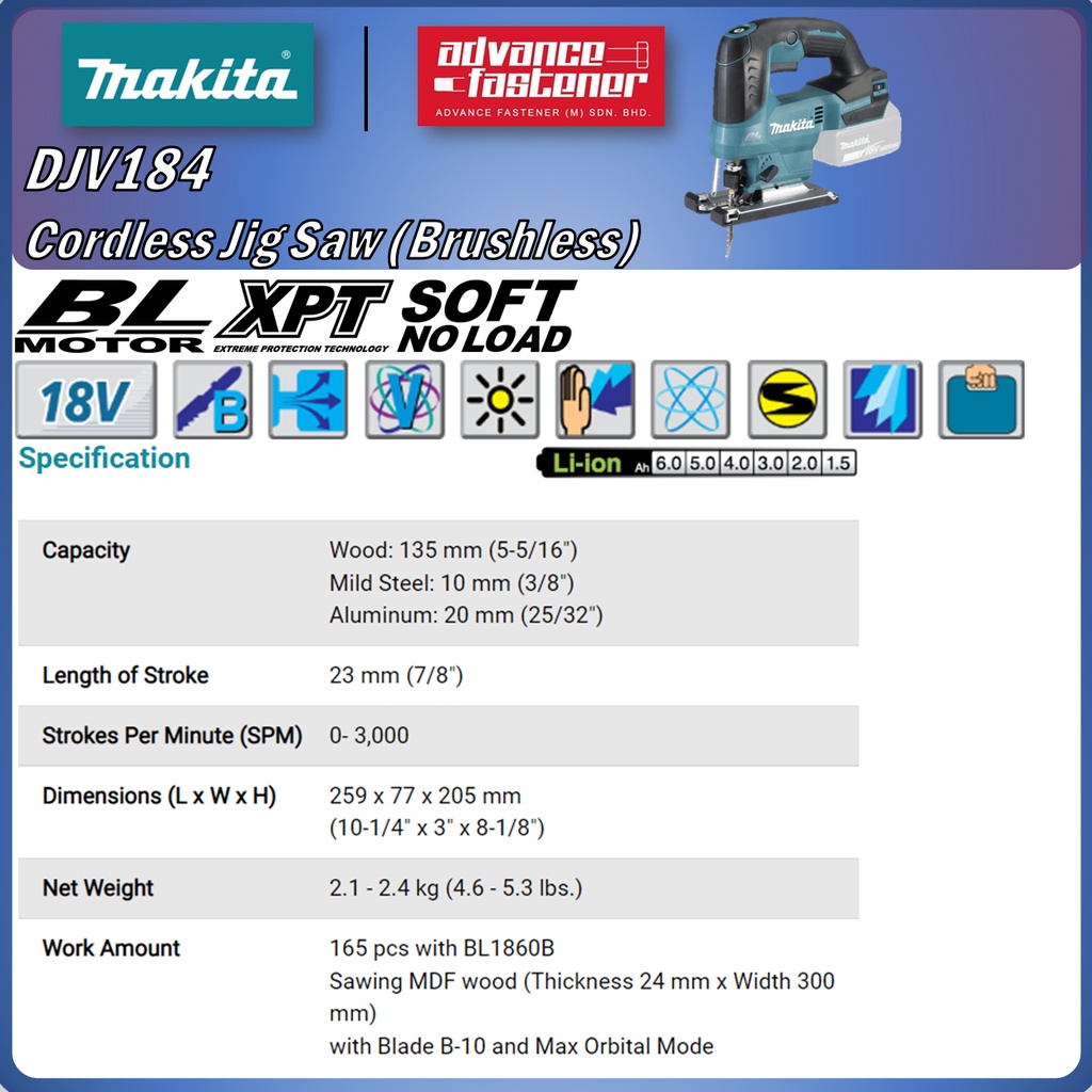 MAKITA 18V Cordless Woodwork Combo Kit A (DJV184 Jig Saw / DJR183 Recipro Saw / DGA402 Angle Grinder / DBO180 Sander)