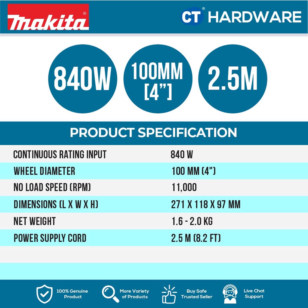 MAKITA 9556HNG CORDED ANGLE GRINDER 100mm (4") | 840W | 11,000 RPM