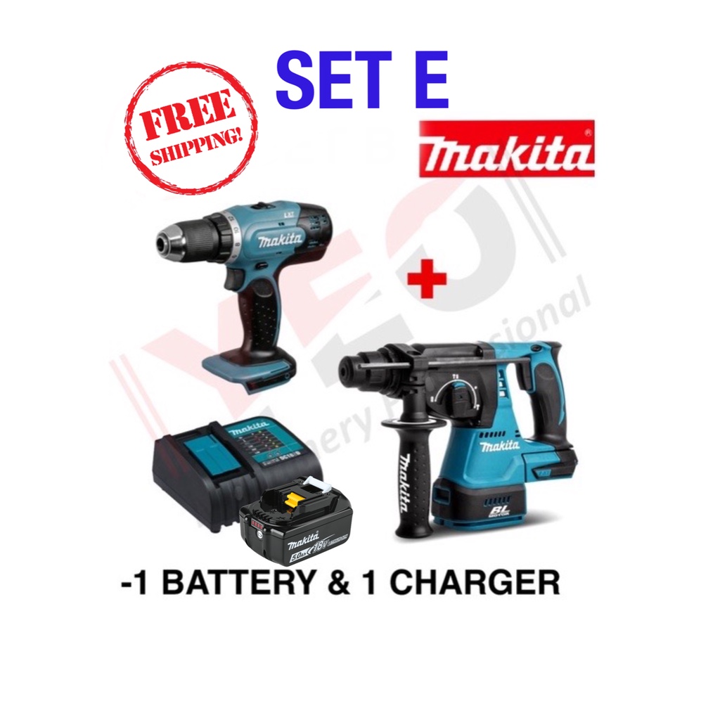 MAKITA COMBO ( DHR242 + DDF453 + DGA402 ) MAKITA DHR242RFE ROTARY HAMMER + MAKITA DRILL + MAKITA GRINDER