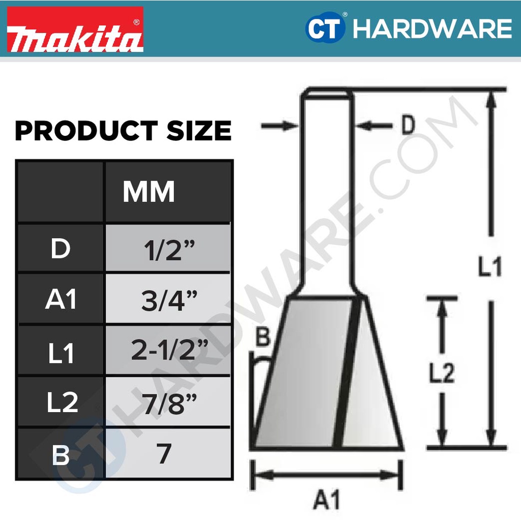 MAKITA D-49563 DOVETAIL BIT ROUTER BIT 1/2" SHANK ( 3/4" MM ) - 1PC
