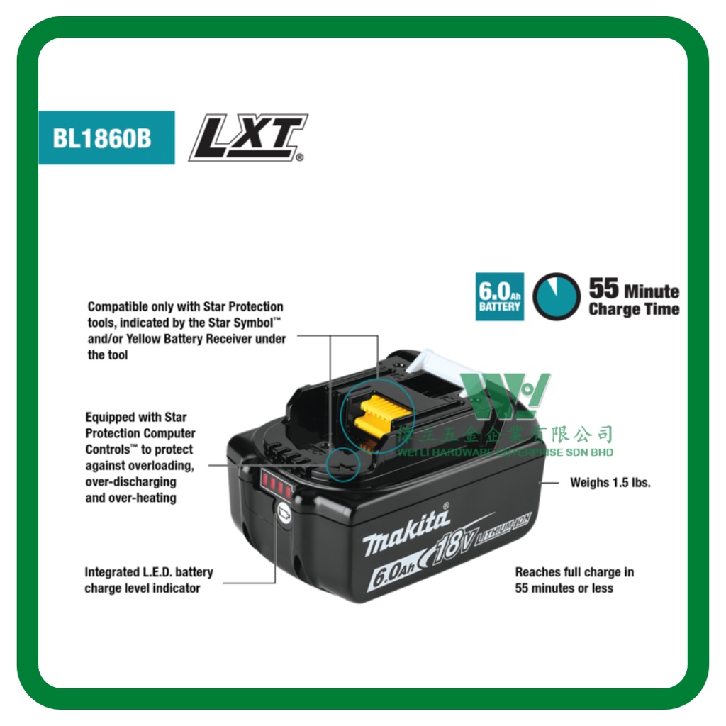 MAKITA BL1860B 6.0ah Litium-Ion Battery 18V 197422-4 (1Year Warranty) - Authentic