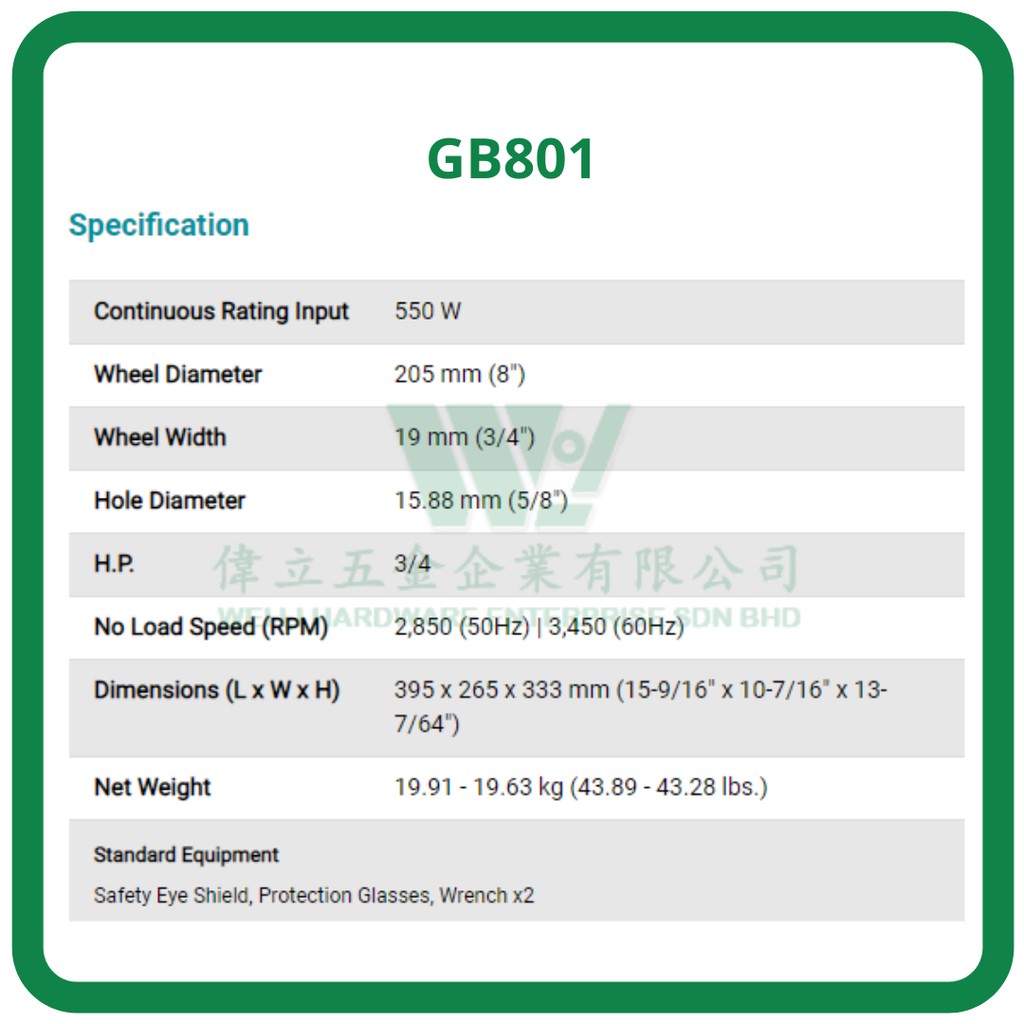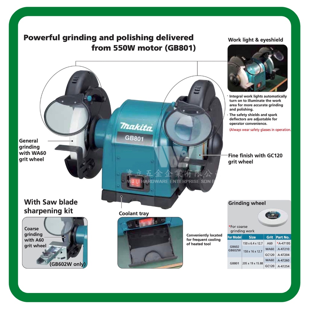 MAKITA GB801 8" Bench Grinder 550W/Heavy Duty/1year Warranty/Mesin Ssa Batu