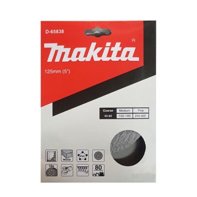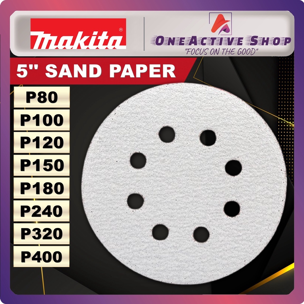 MAKITA SAND PAPER 5 INCH 125MM (P80-400) " 1 PCS " ( 8 HOLE KERTAS PASIR BULAT / ORBITAL SANDPAPER BOSCH SAND PAPER