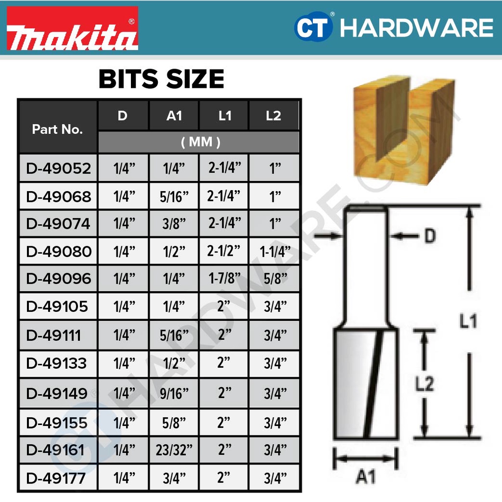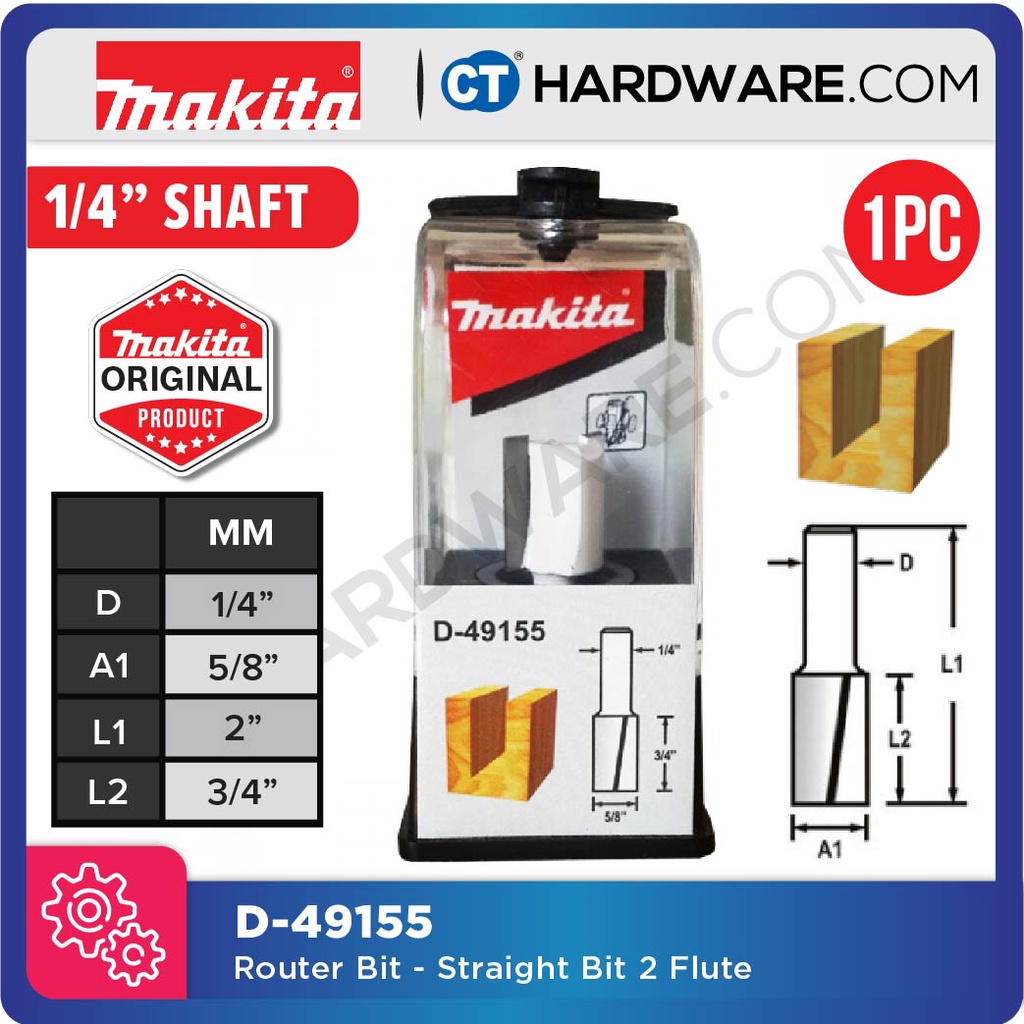 MAKITA STRAIGHT BIT 2 FLUTE ROUTER BIT 1/4" SHANK - 1PC