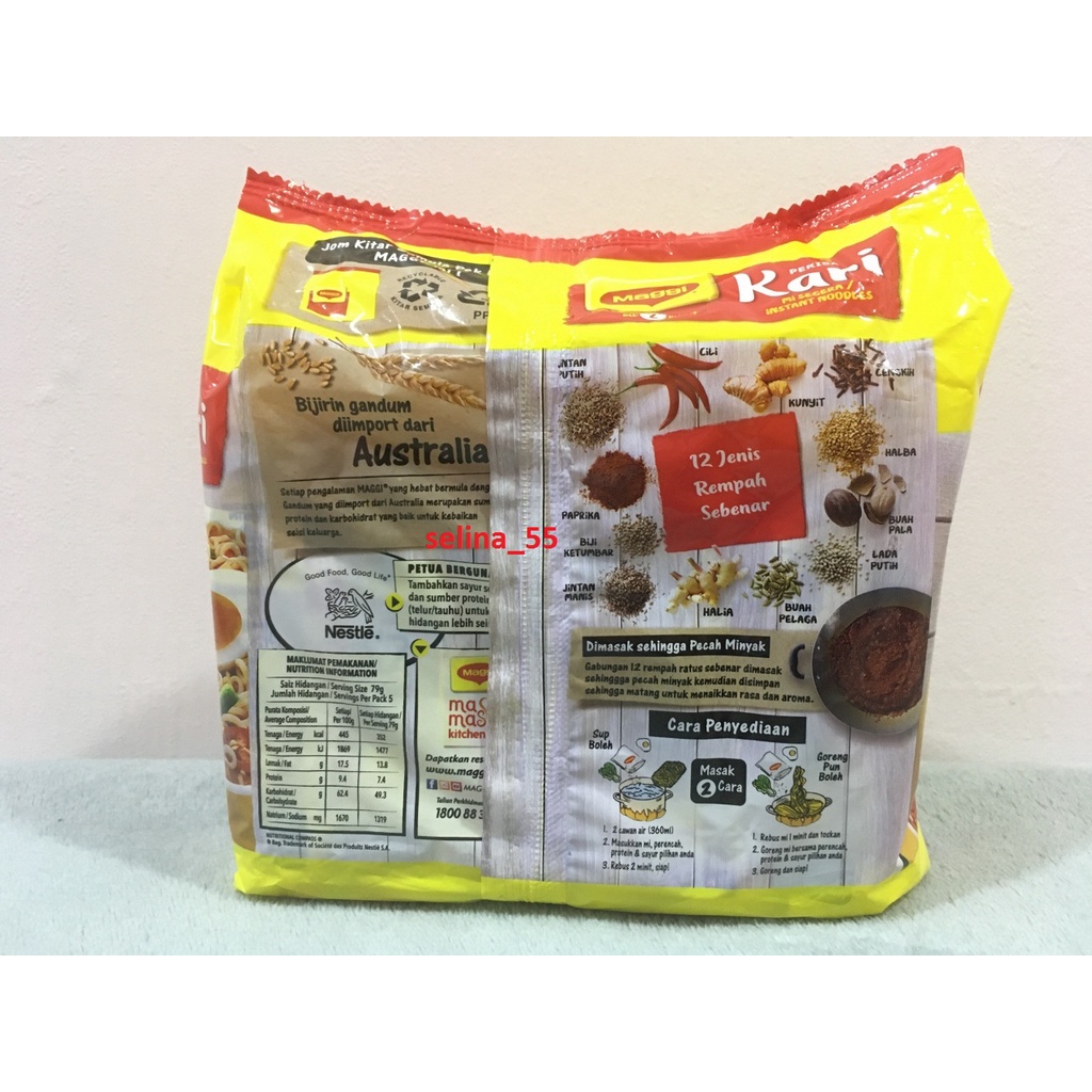 MALAYSIA MAGGI PERISA KARI PEK BAHARU 2 MINIT MI SEGERA CURRY INSTANT NOODLES ( 5 x 79g )