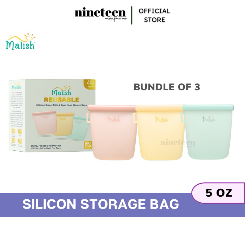MALISH Reusable Silicone Breast Milk & Baby Food Ziplock Bag 5oz / 8oz (3Pcs/Box)