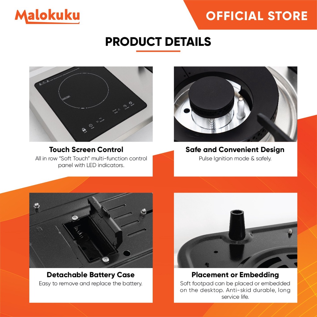 MALOKUKU Dual Gas Stove Stainless Steel Infrared Burner & Electric Induction Build-in | Tabletop Hybrid Gas Cooker Dapur