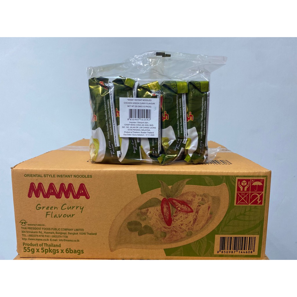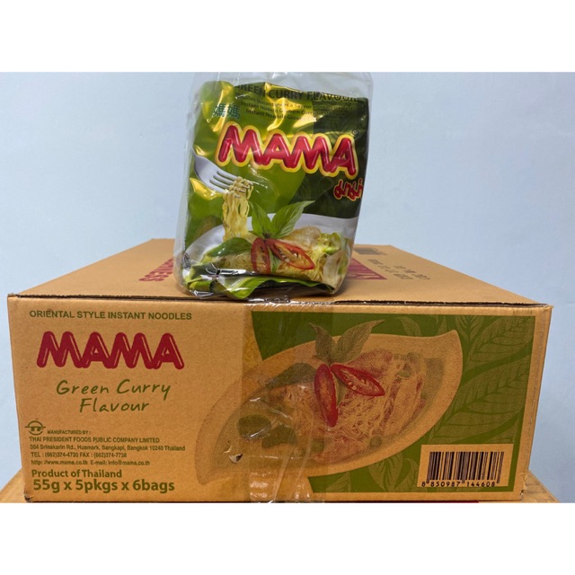 MAMA INSTANT NOODLES CHICKEN GREEN CURRY 55GM X 5 PACKS X 6 BAGS