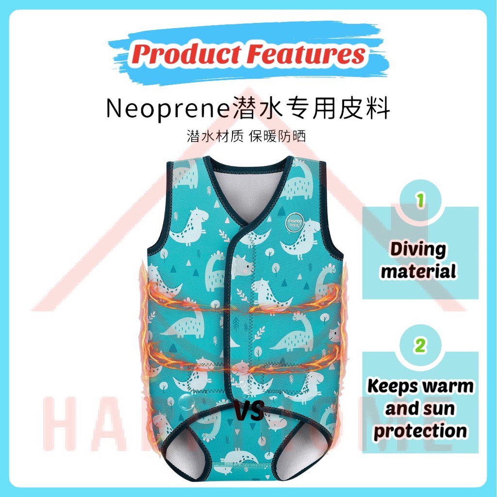 MAMBOBABY 3mm Neoprene Wetsuit Baby Thermal Swimwear Prevent Cold Keep Warm Adjustable Velcro Sun Protection Infant
