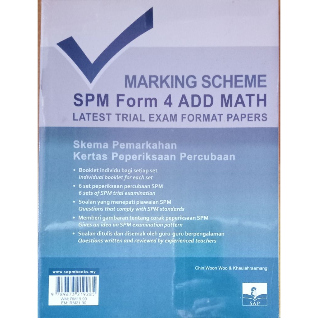 MARKING SCHEME SPM FORM 4 ADD MATH LATEST TRIAL EXAM FORMAT PAPERS (6 IN 1)