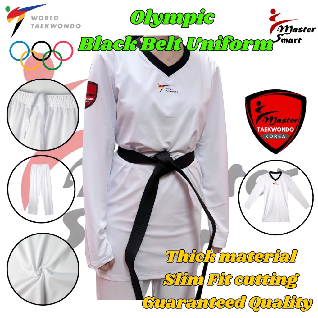MASTER SMART WT Taekwondo Black Belt Uniform Olympic-wear Slim Fit Cutting Thick Material BAJU Uniform Taekwondo