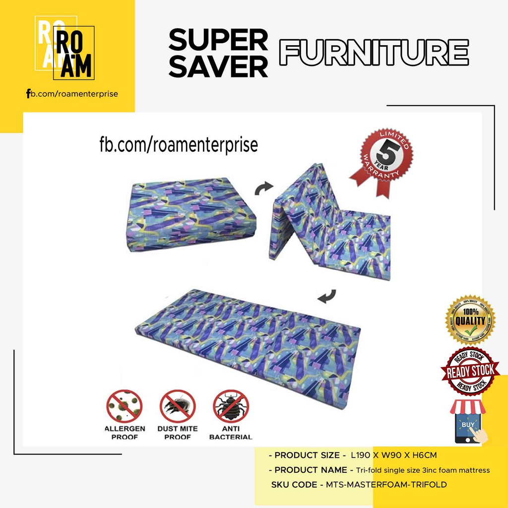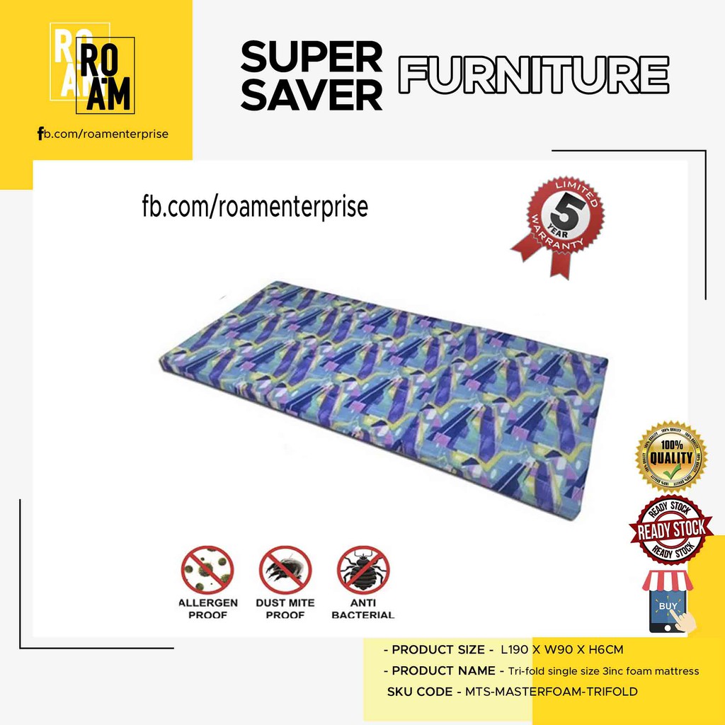 MASTERFOAM TRI-FOLD SINGLE SIZE 3INC FOAM MATTRESS Foldable Single Mattress Tilam Katil Bujang Rebond Foam 3 inch