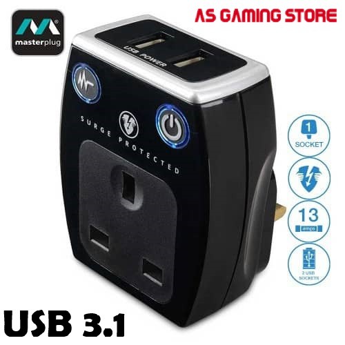 MASTERPLUG USB CHARGER 2 USB 3.1 WITH SURGE PROTECTION SRGAUSBPB3-MPA BLACK