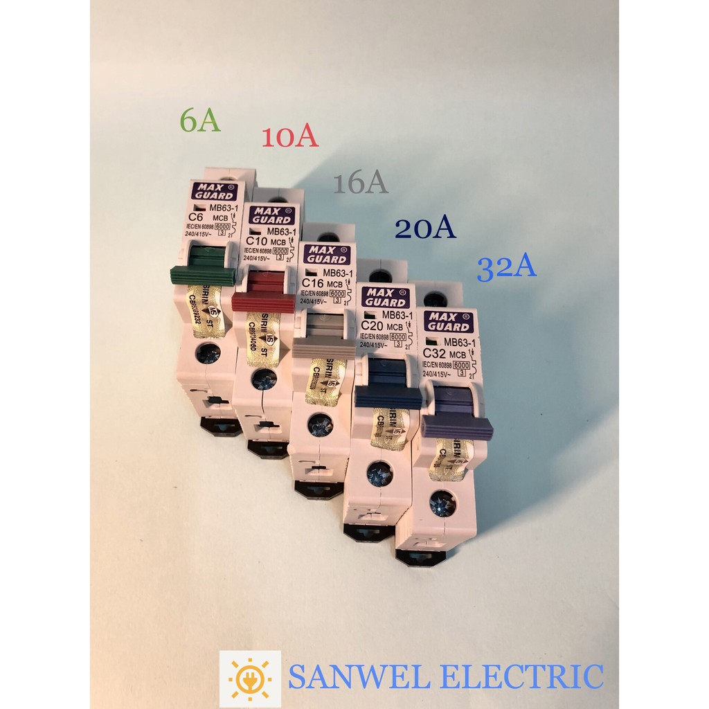 MAXGUARD 1 Pole (6kA) MCB 6A,10A,16A,20A and 32A Miniature Circuit Breaker
