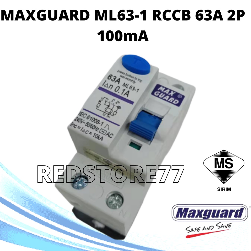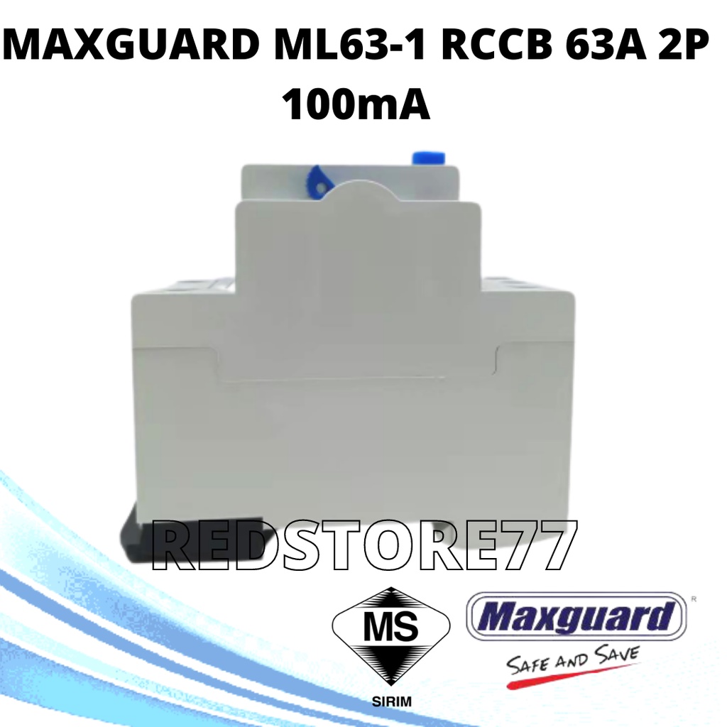 MAXGUARD ML63-1 RCCB 63A 2 POLE 100mA / 63A 2P ELCB / SINGLE PHASE ELCB RCD RCCB