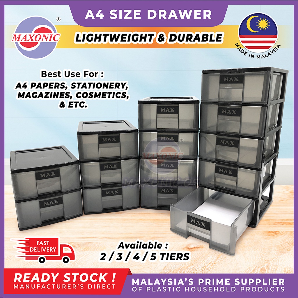 MAXONIC 2/3/4/5 TIER A4 DRAWER | DESK/HOME/OFFICE STATIONARY DRAWER | DOCUMENT BOX | LACI A4 | DESK ORGANISER