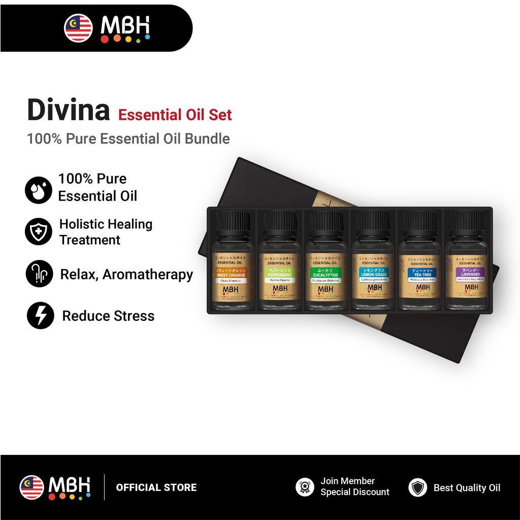 MBH Divina Pure Essential Oil/Therapeutic Grade Essential Oil Gift Set (6 x 10ml)