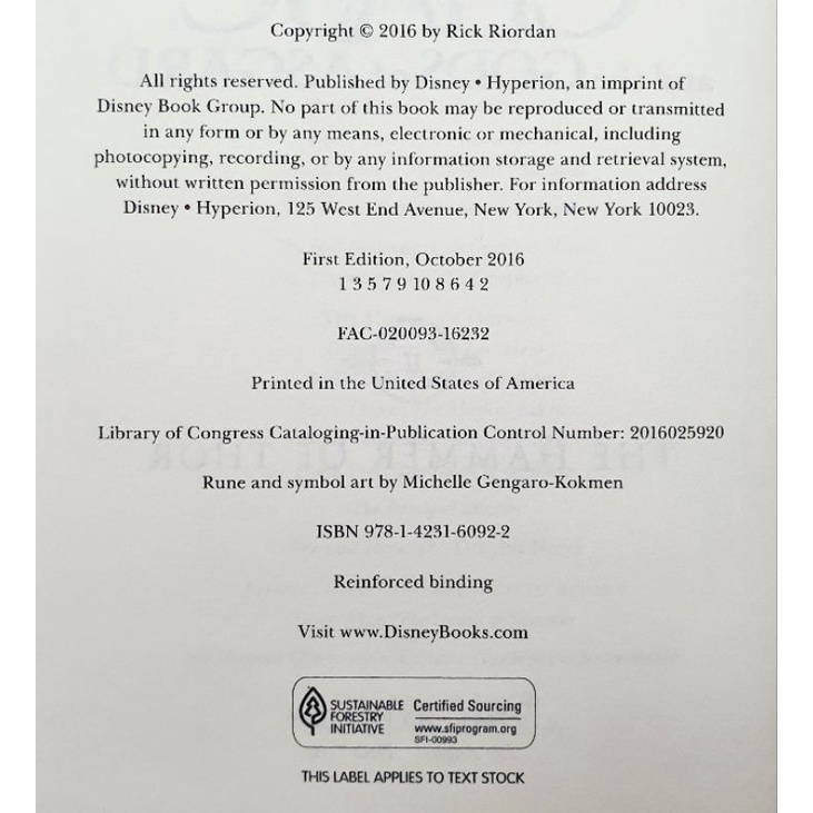 MBH | MAGNUS CHASE AND THE GODS OF ASGARD : THE HAMMER OF THOR by Rick Riordan (Fantasy) *HARDCOVER*