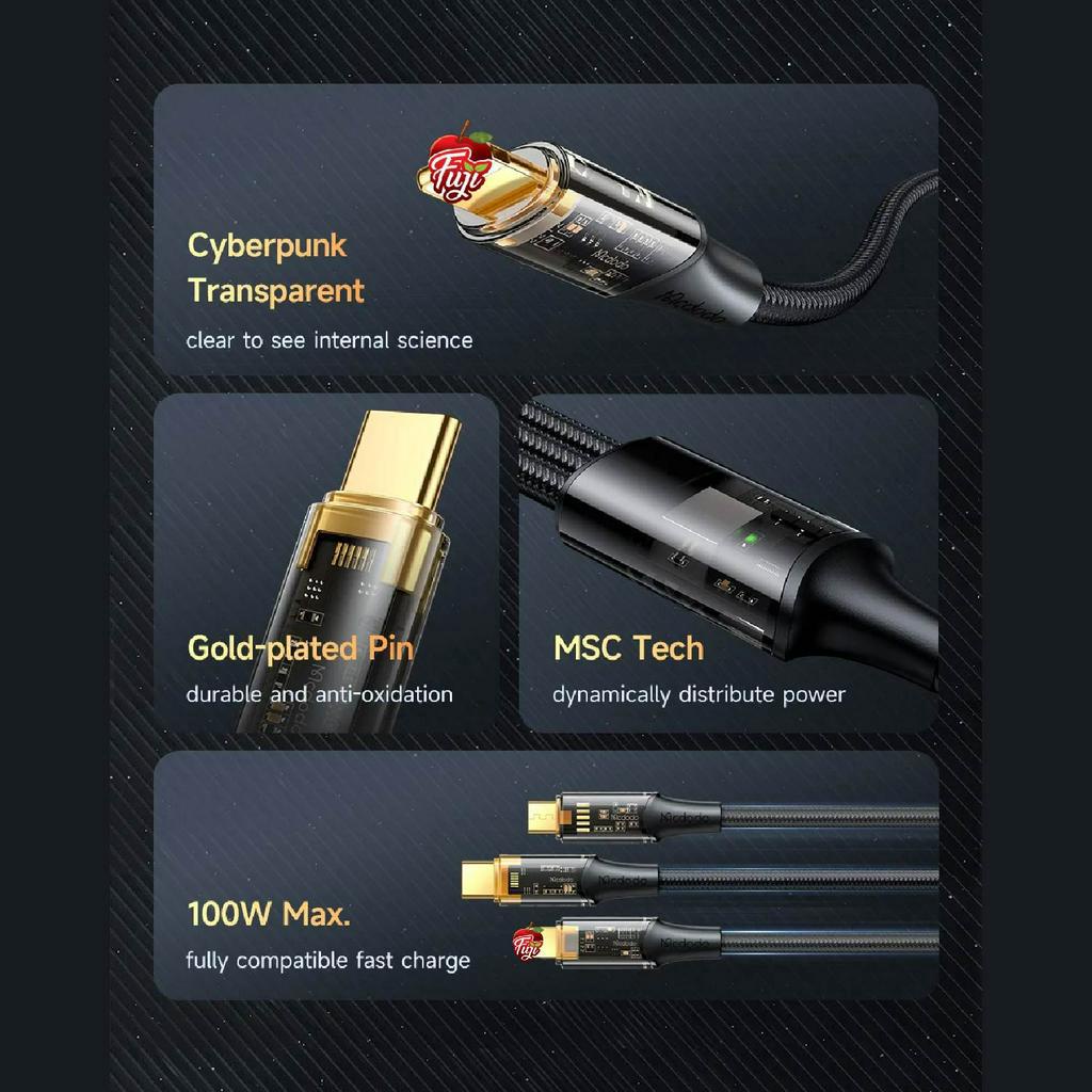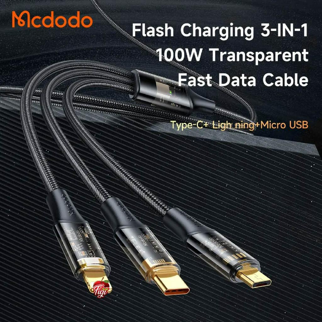 MCDODO 3 in 1 Charging Cable Transparent Shell USB To Ip/ Micro/ Type-C 6A QC3.0 QC2.0 VOOC Fast Multi Charging