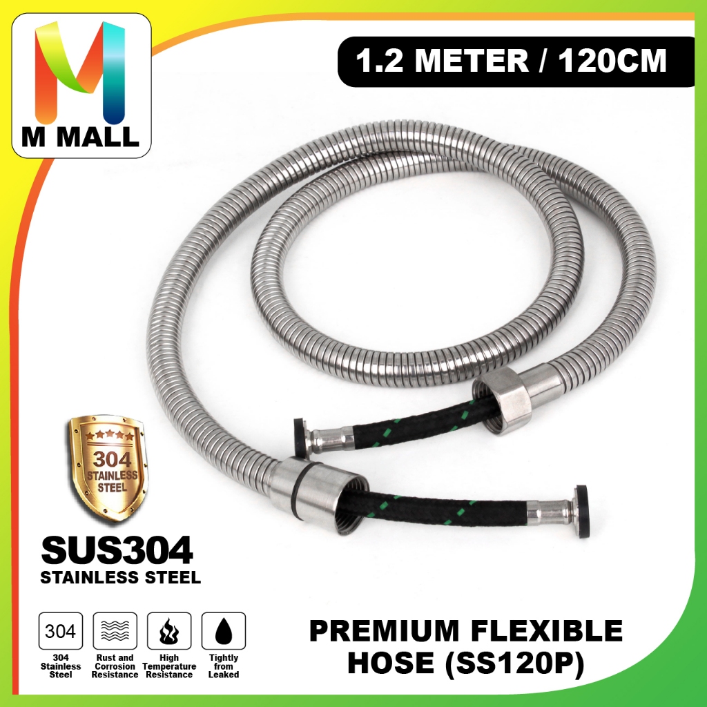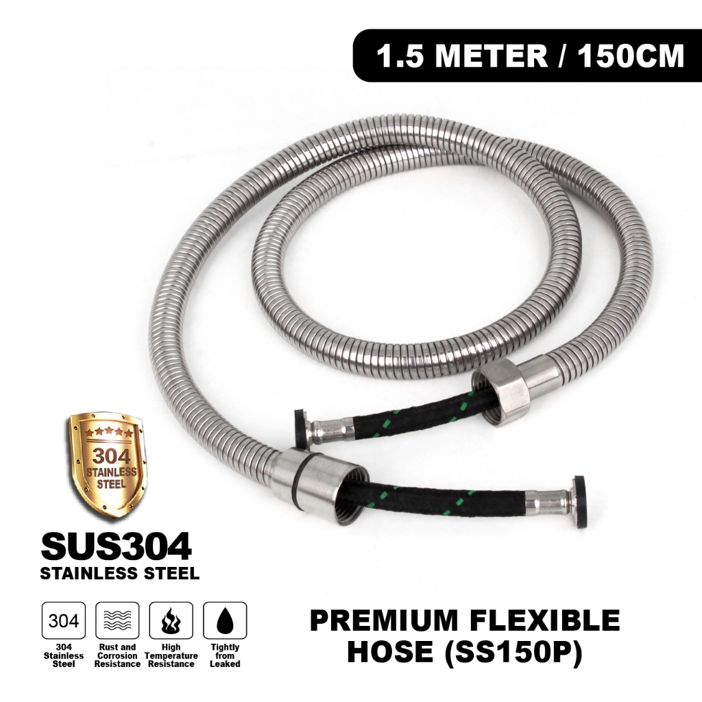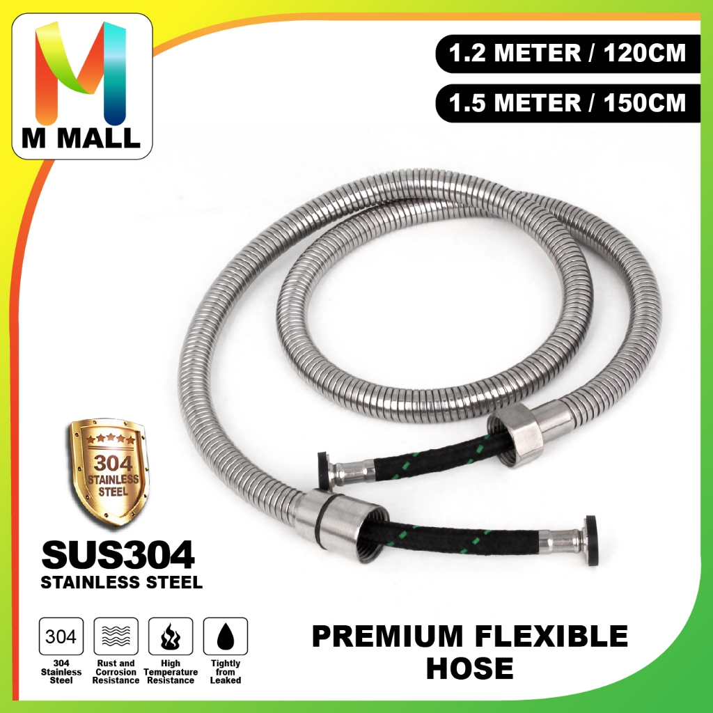MCPRO SUS304 STAINLESS STEEL PREMIUM FLEXIBLE Shower Hose for Bidet Bath / FLEKSIBEL Hos - 1.2M (SS120P) /1.5M (SS150P)