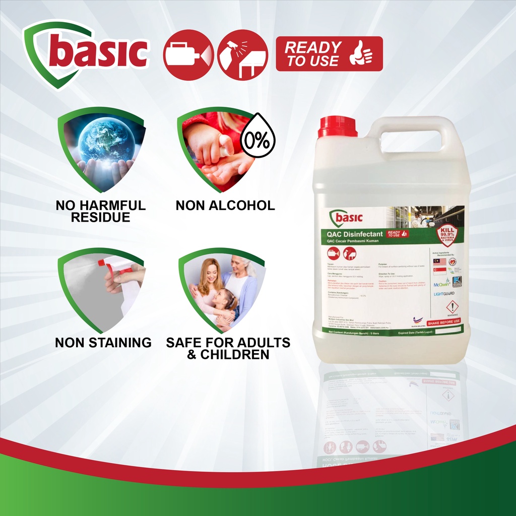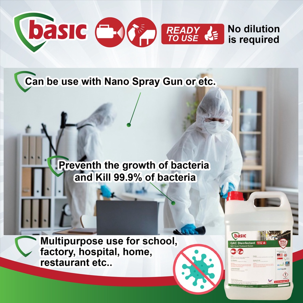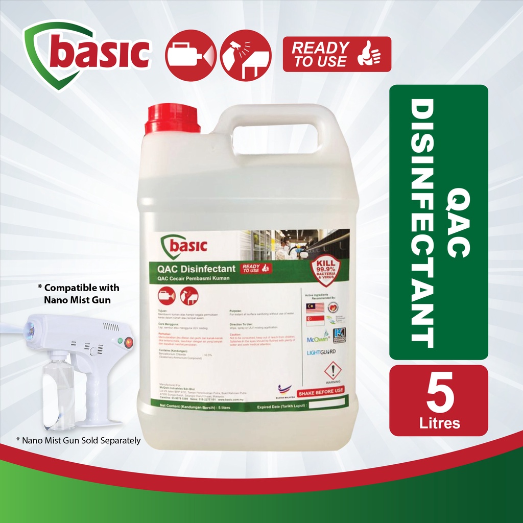 MCQWIN BASIC QAC DISINFECTANT 5L (NON ALCOHOL) QUAT/QAC PEMBASMI KUMAN 5LITRE / NANO MIST GUN REFILL