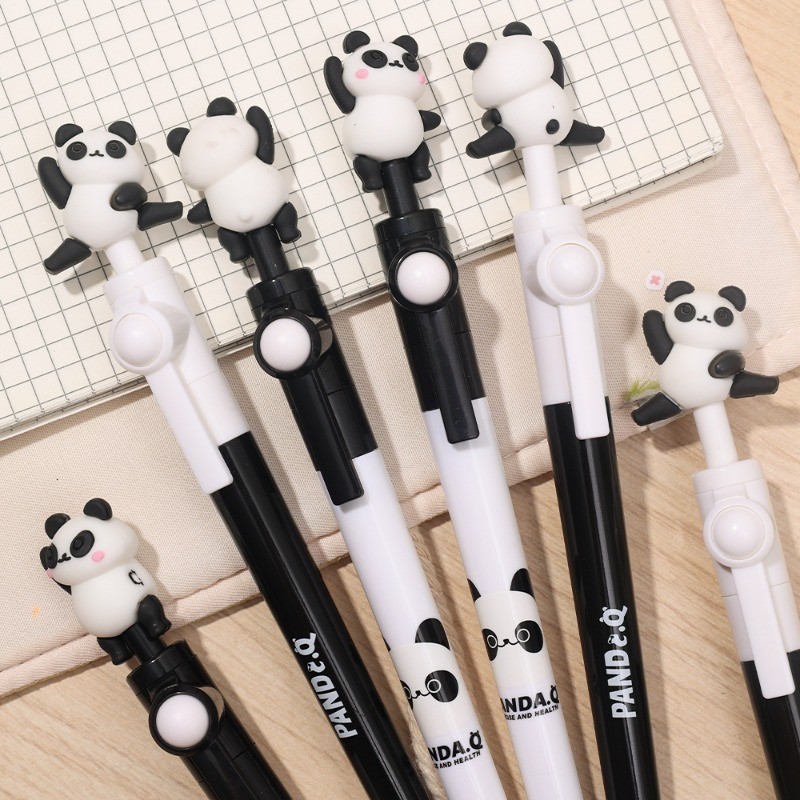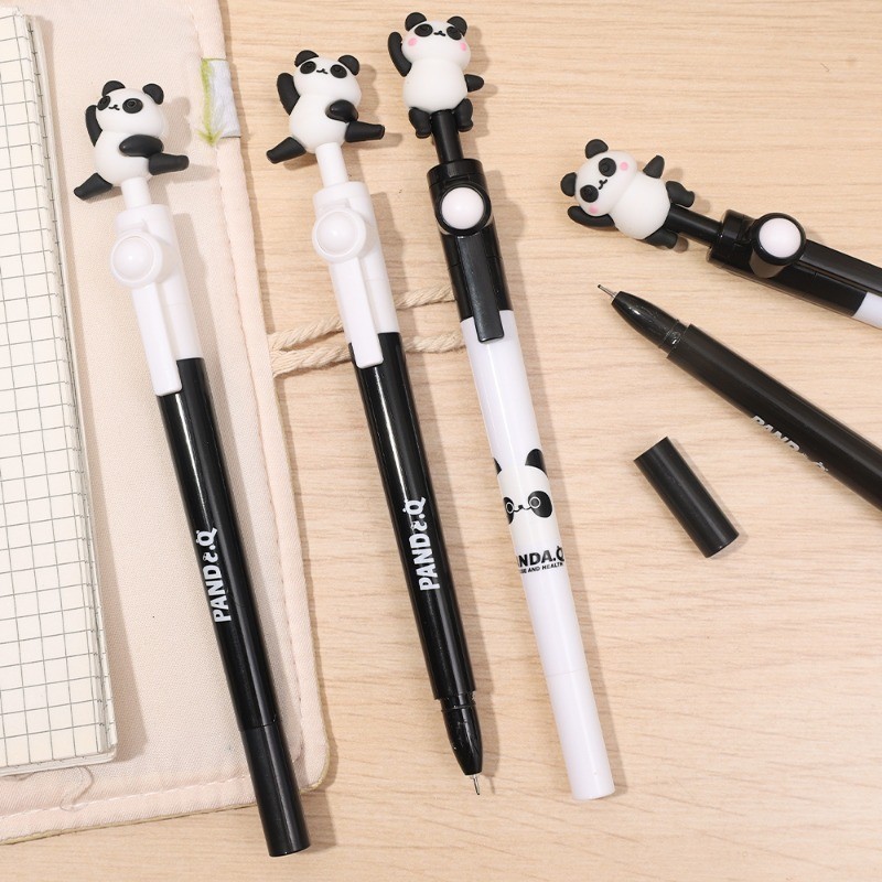 MCT 3Pcs/Set Creative Panda Rotating Gel Pens - Black Ink Signature Pens - Office School Decompressed Writing Pens