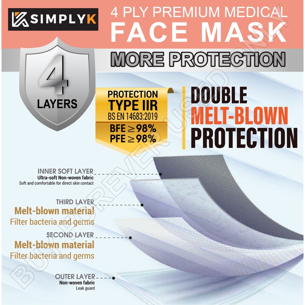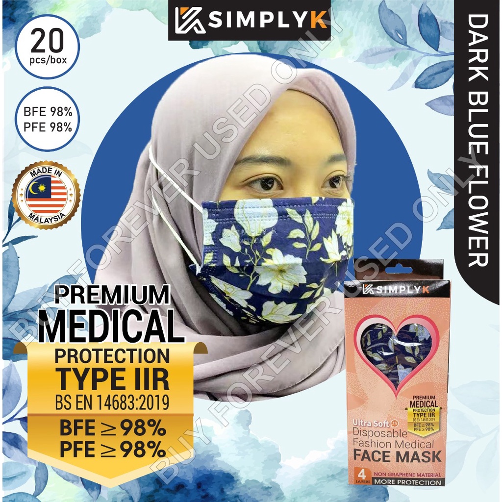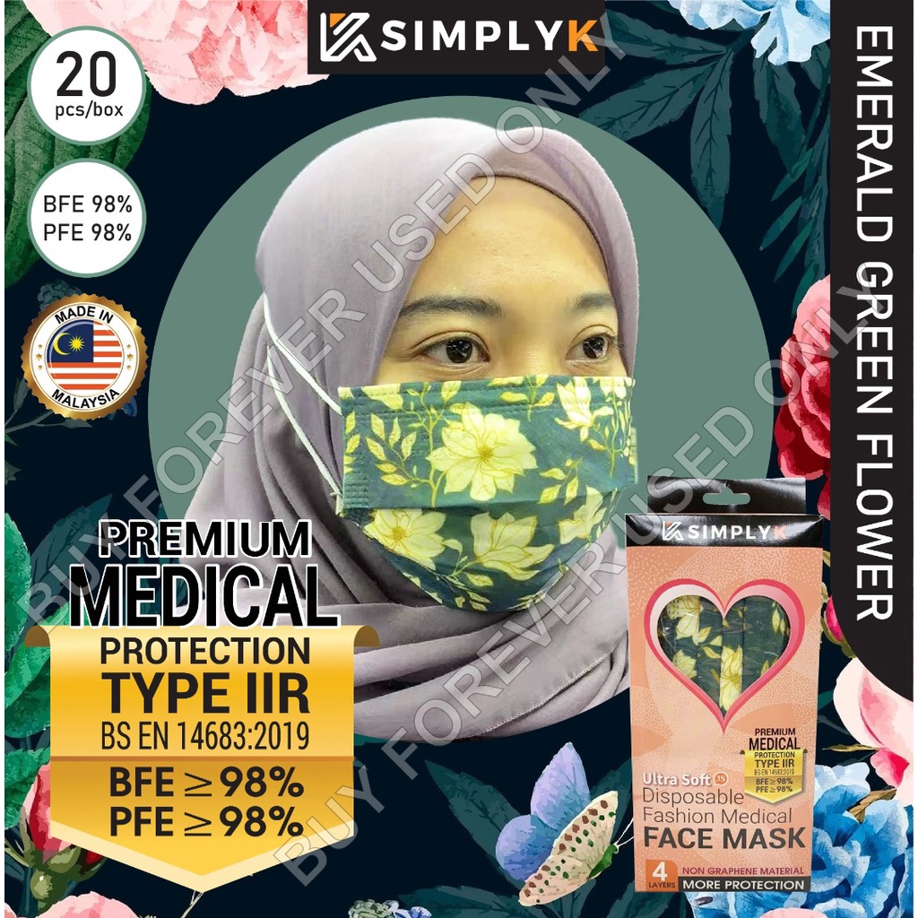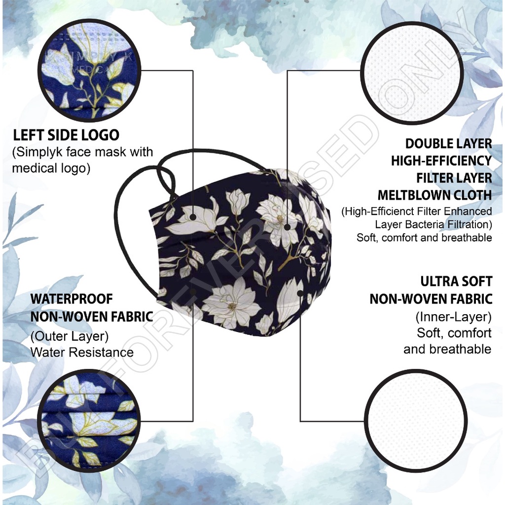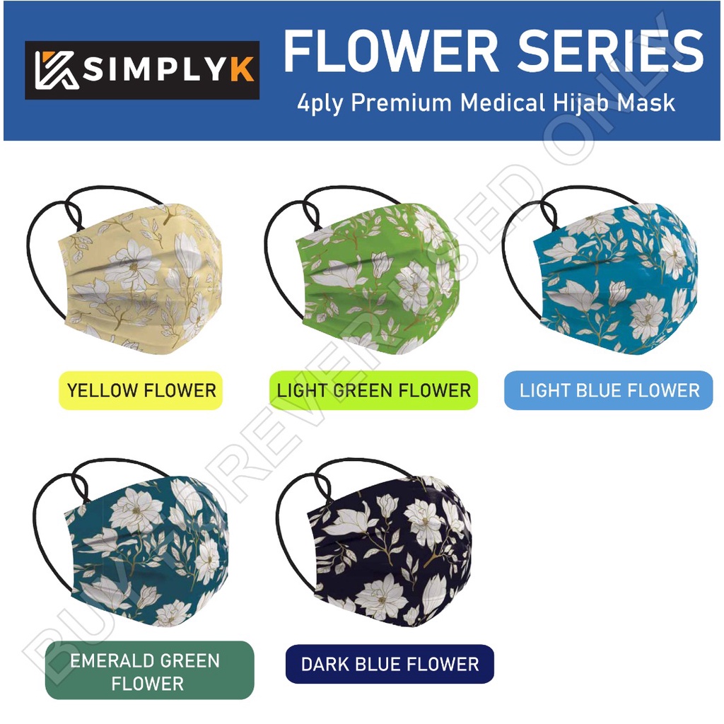 MDA Cert SIMPLY K Medical 4ply Hijab FLORA Face Mask 20pcs