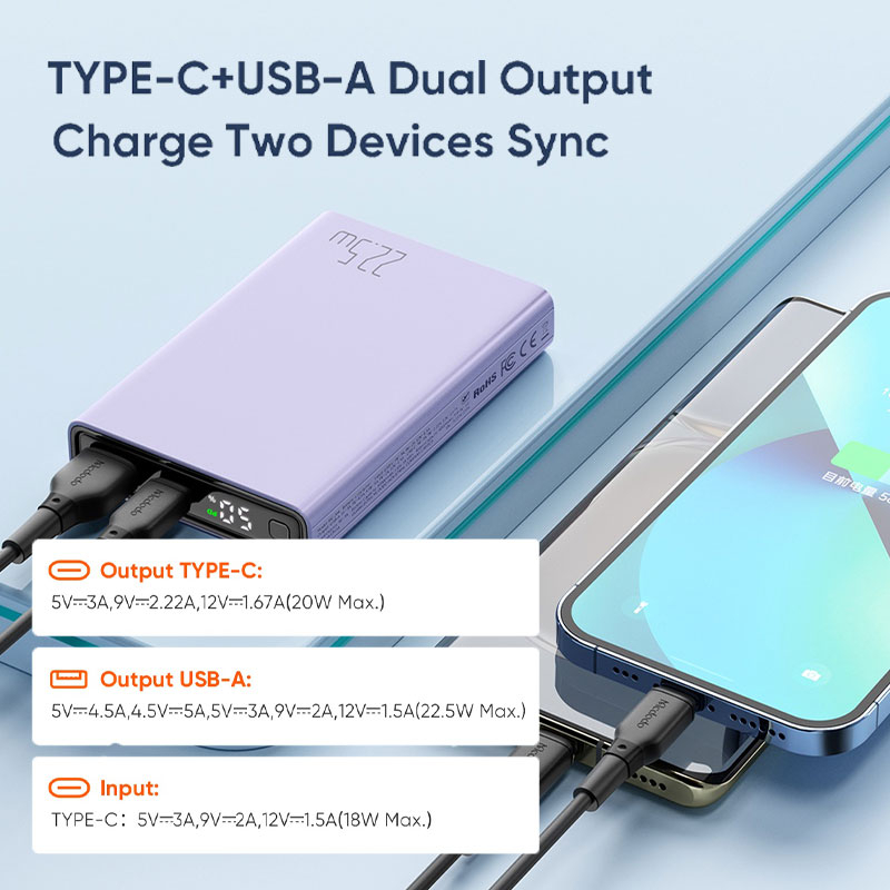 MDD 22.5W + 20W PD Digital Display 10000mAh Power Bank High Density Cells Ultra Slim & Mini Size 9 Fast Charge Protocols