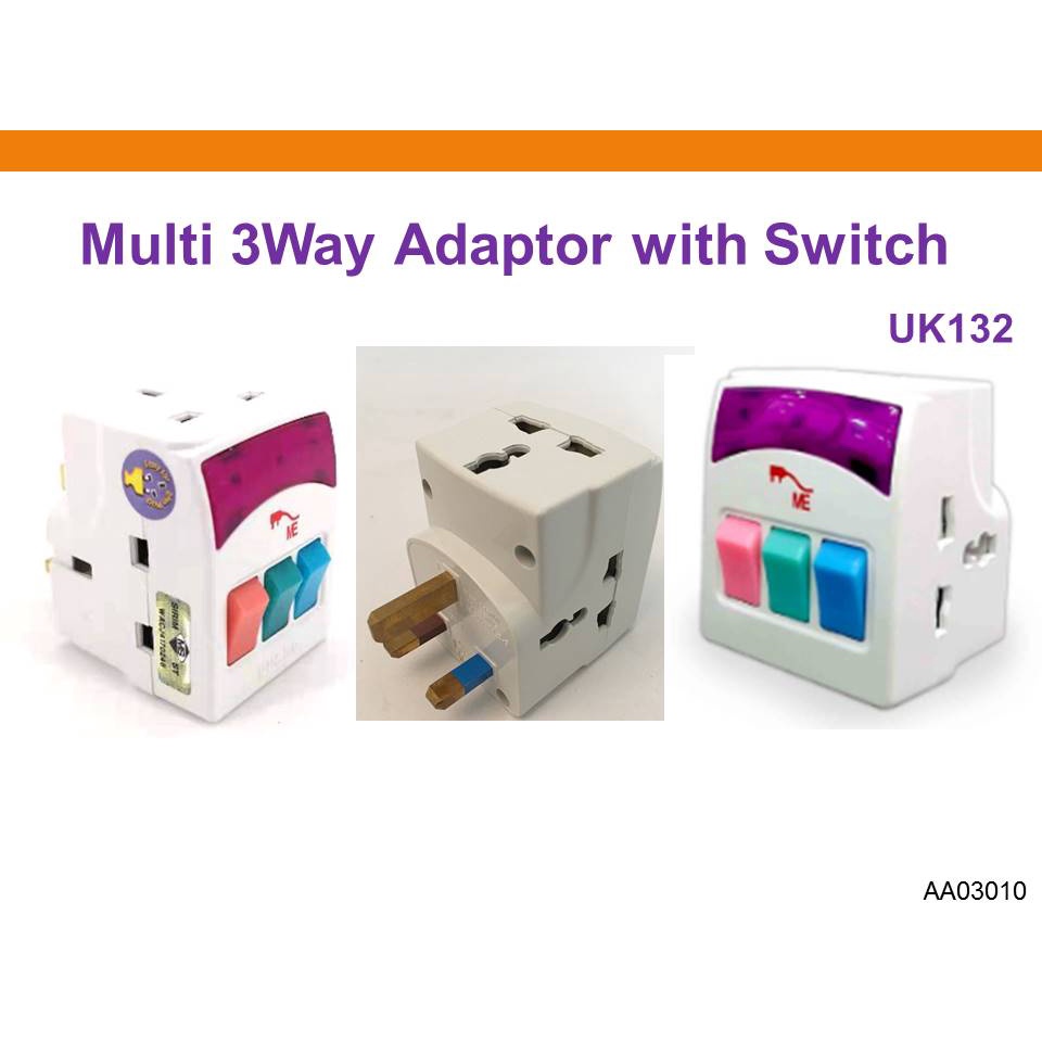 ME 3 Way Adaptor Universal Travel Plug 13A Switch Socket Adapter Suis Plug Soket with Neon Light