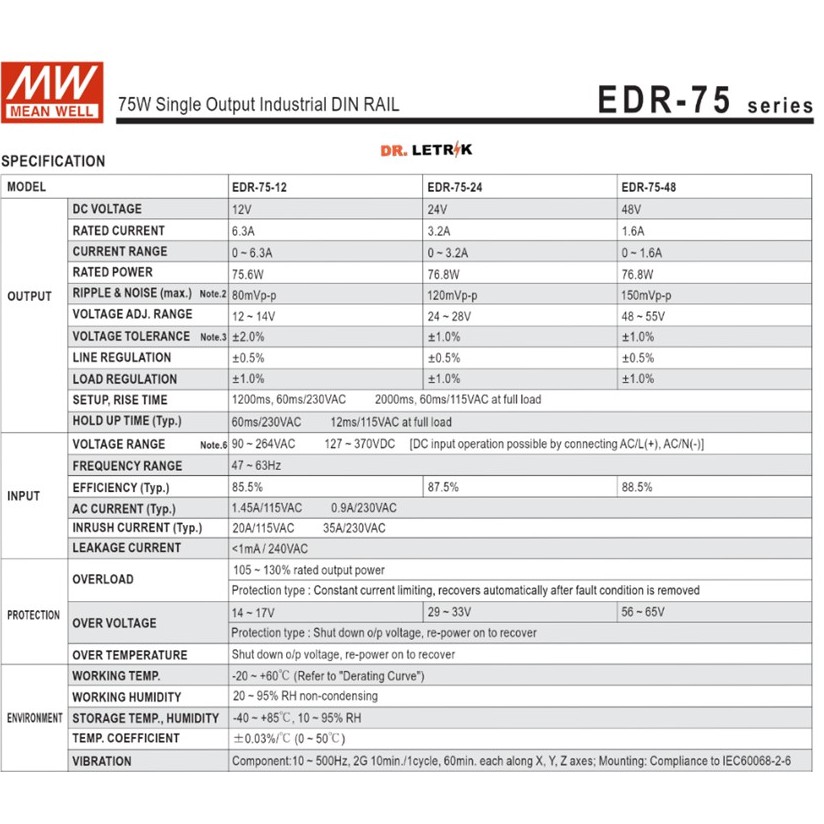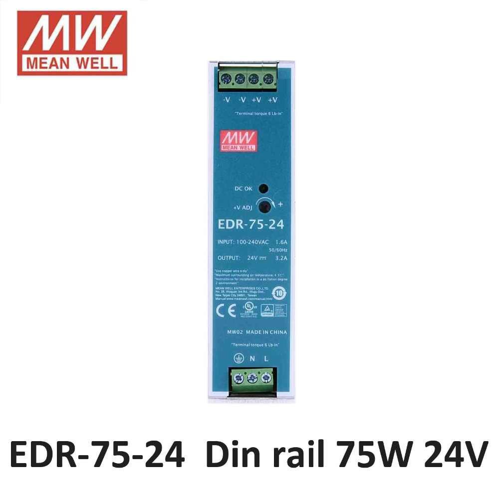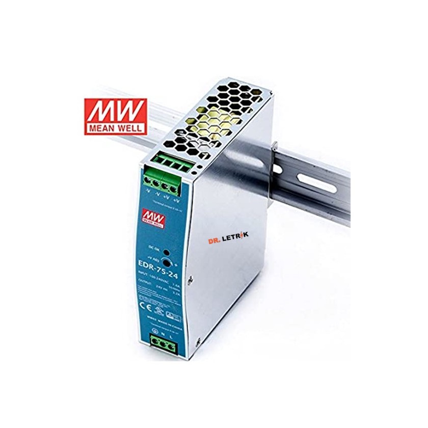 MEANWELL EDR-75-24 75W 3.2A 24VDC Industrial Din Rail Power Supply