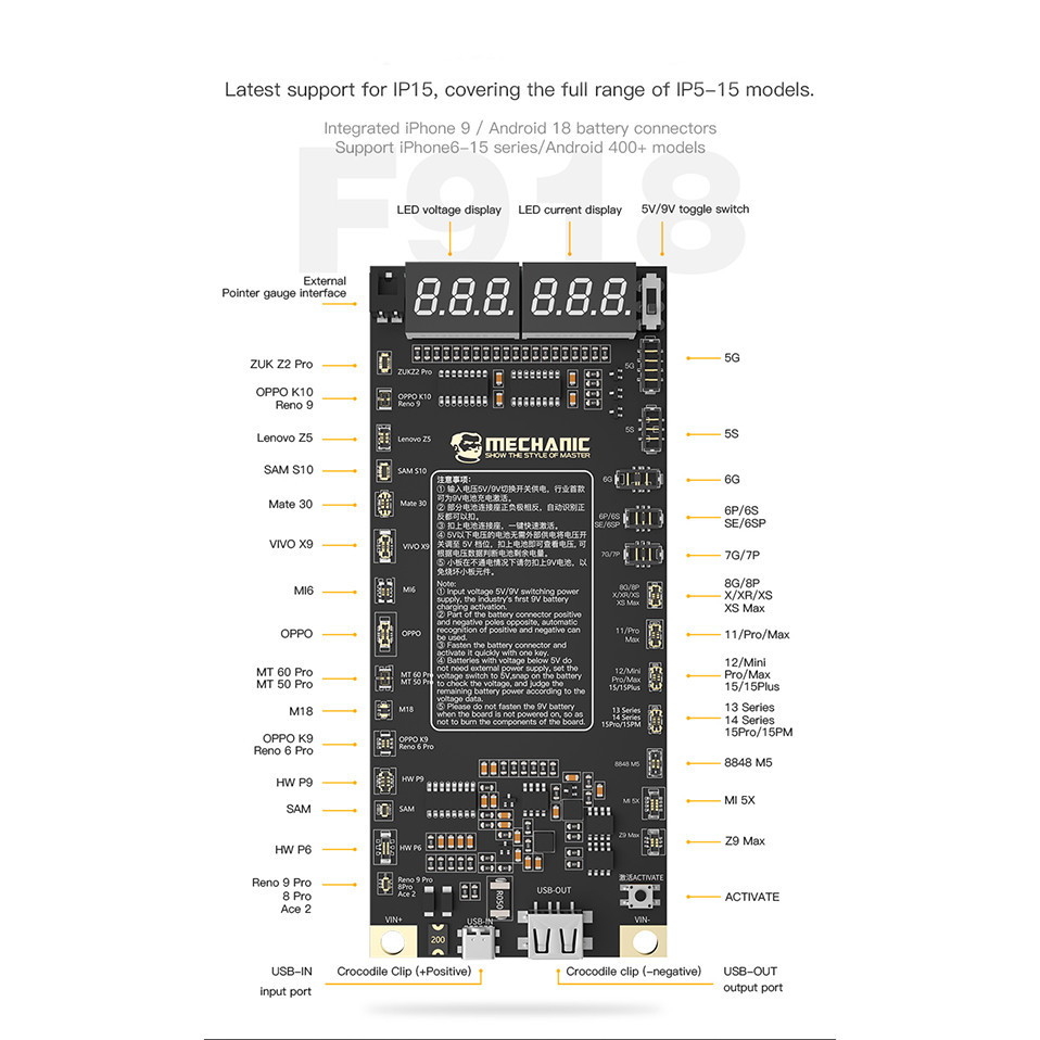 MECHANIC F918 Battery Activation Detection Board One-click Activation Battery Fast Charge for Phone 5G-15PM/Android Repair