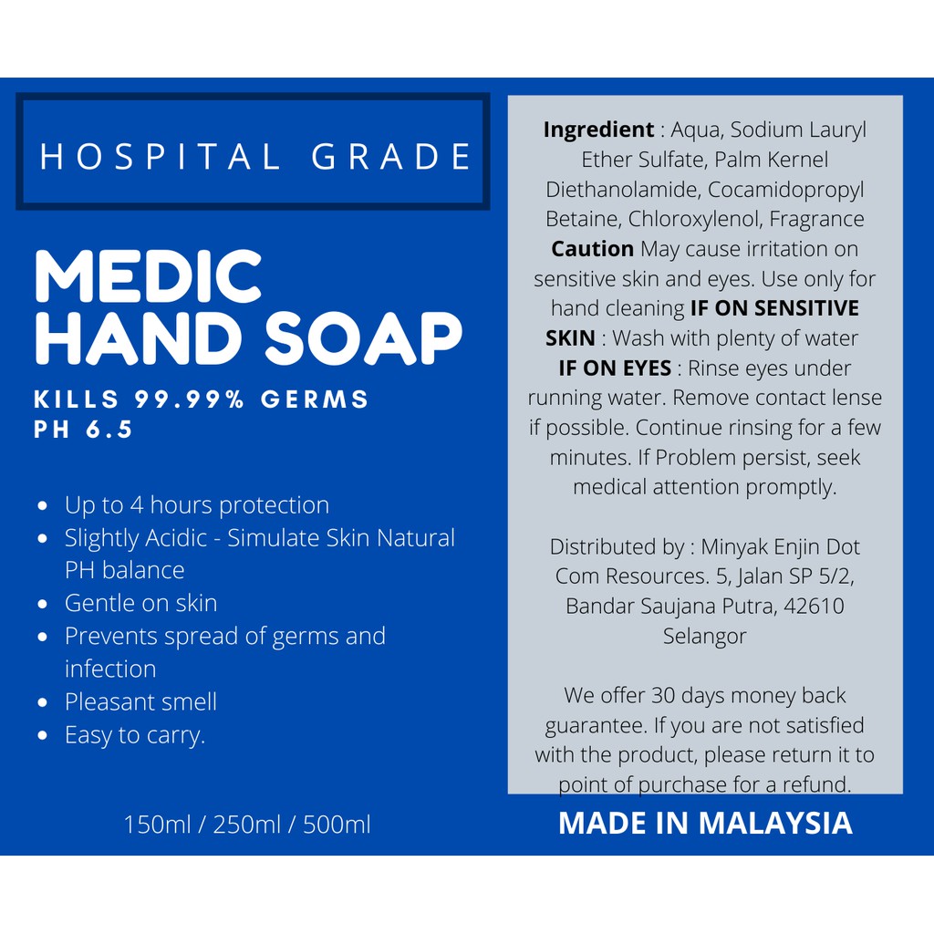 MEDIC HAND SOAP Hospital Grade Antibacterial Kills 99.99% germs - Sanitizing Effect 150ml / 250ml Pouch