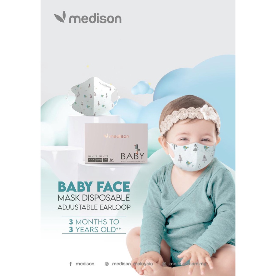 MEDISON Baby 4Ply 3D Premium Soft Medical Face Mask Disposable - 20pcs/box//Baby//3 month -3 years old plus