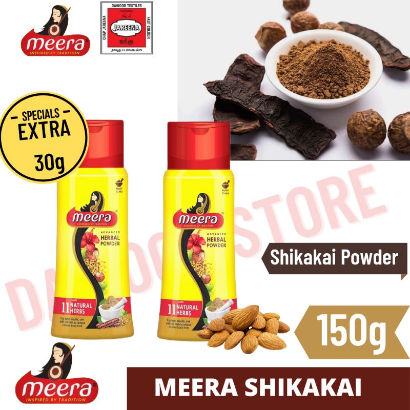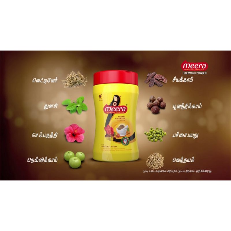 MEERA - Herbal Shikakai Powder 150g & 80g | Kunkudukai Badam Shampoo 180ml & 340ml | Strong & Healthy Hair Wash
