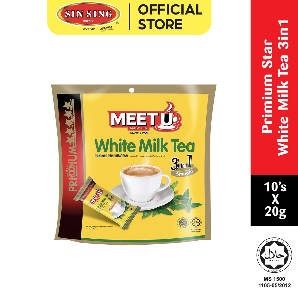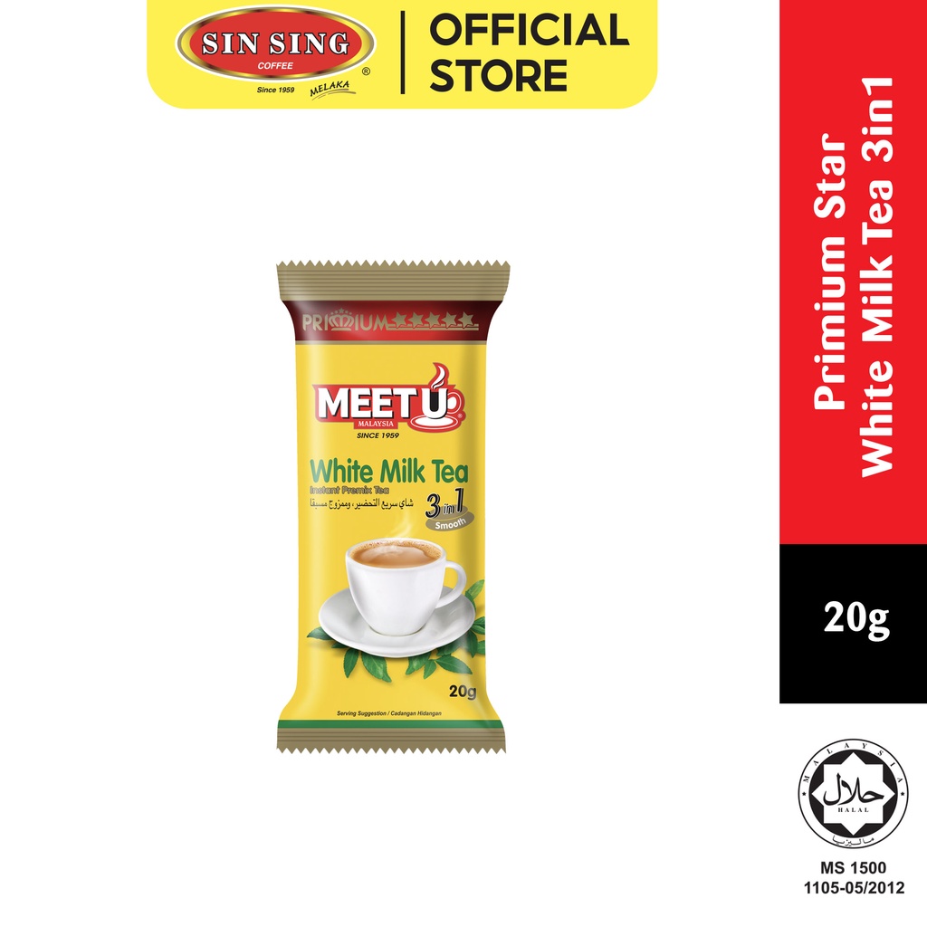 MEET U Primium Star White Milk Tea 3 in 1 | Teh Putih Susu 3 dalam 1 Pracampur Segera (10's x 20g) HALAL