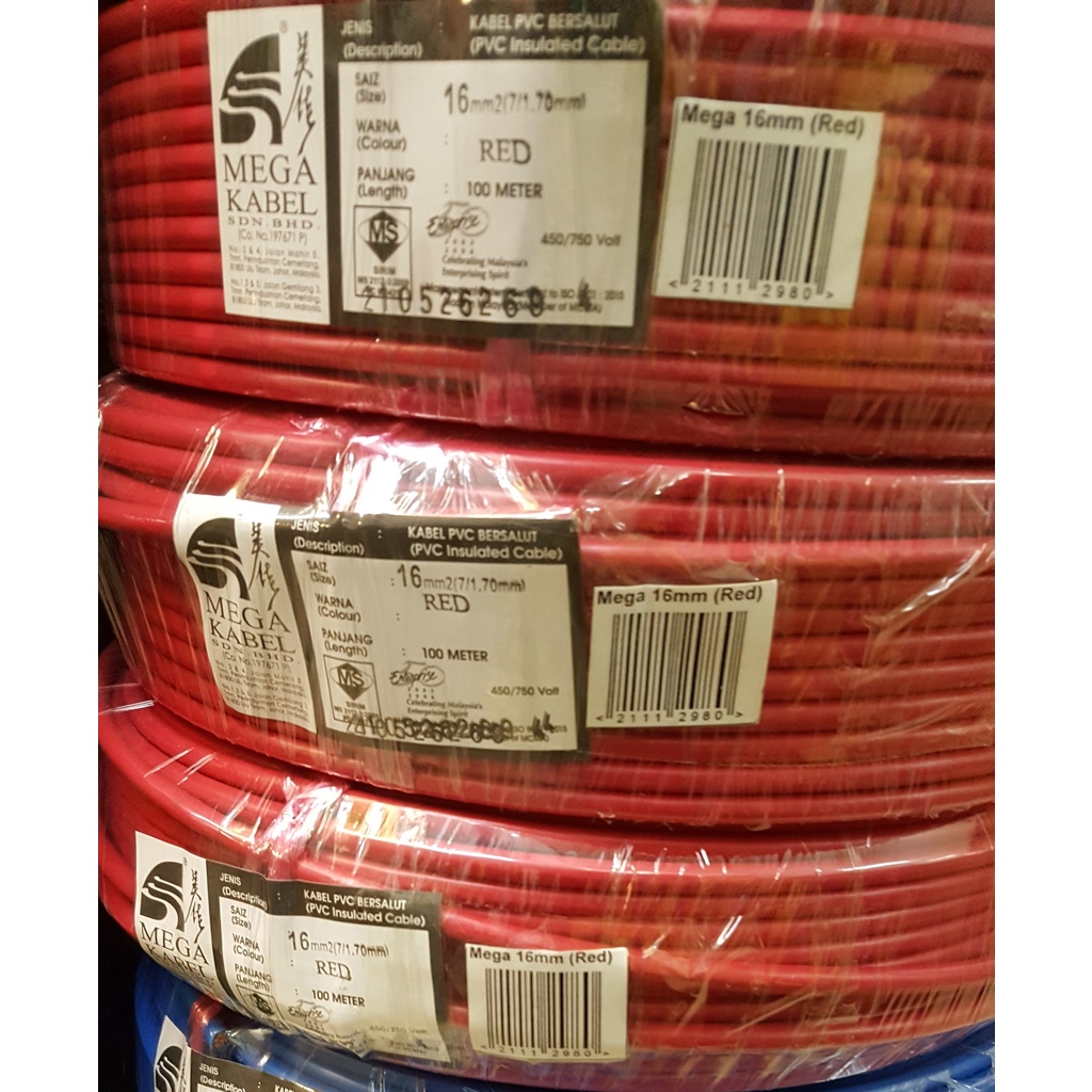 MEGA 16MM PVC CABLE 100% Pure Copper Cable (SIRIM)
