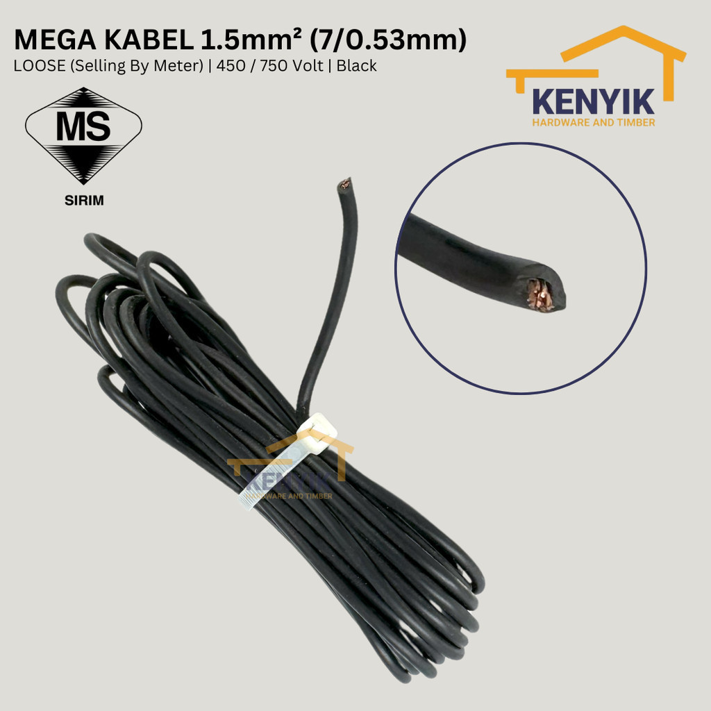 MEGA KABEL [5 Meter] Insulated PVC 100% Pure Copper Cable (SIRIM)
