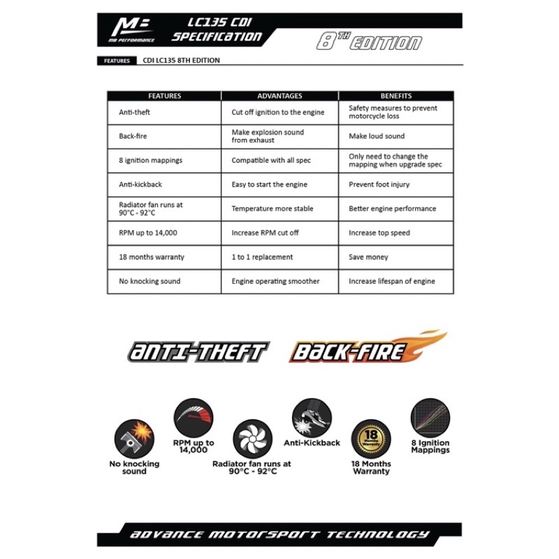 MB PERFORMANCE CDI LC135 8th Edition FREE KEYCHAIN🆕 ( 18 Months Warranty )