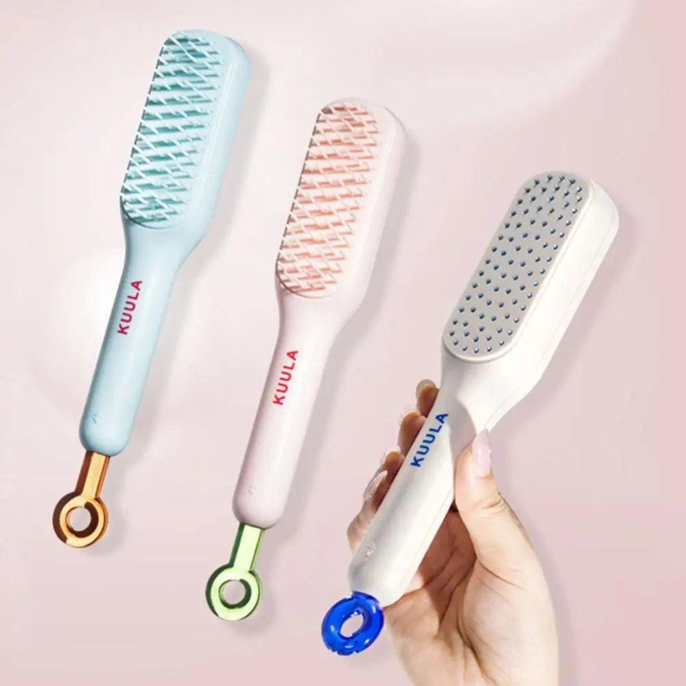 MEIGUII Self Cleaning Hair Comb, Anti-static ABS Magic Retractable Comb, Smoothing Self Cleaning Hairdressing Hair Comb